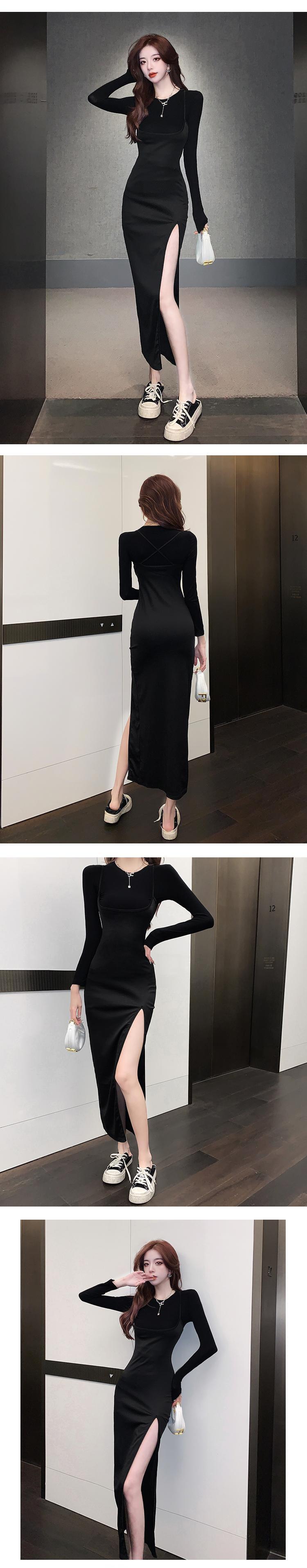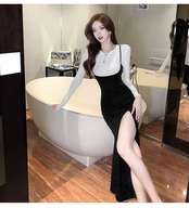セクシースーツレディーススリムニットTシャツスプリットセクシーサスペンダードレスツーピースセット服
