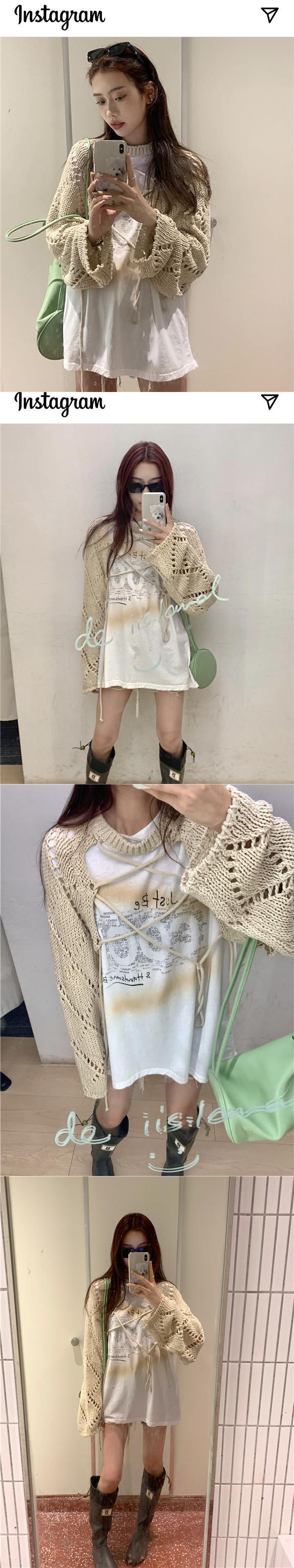 セーターカーディガン + Tシャツ 2 点セットルーズ半袖 Tシャツ中空日焼け止めニットホットガールスーツ ショート ハーフスリーブ