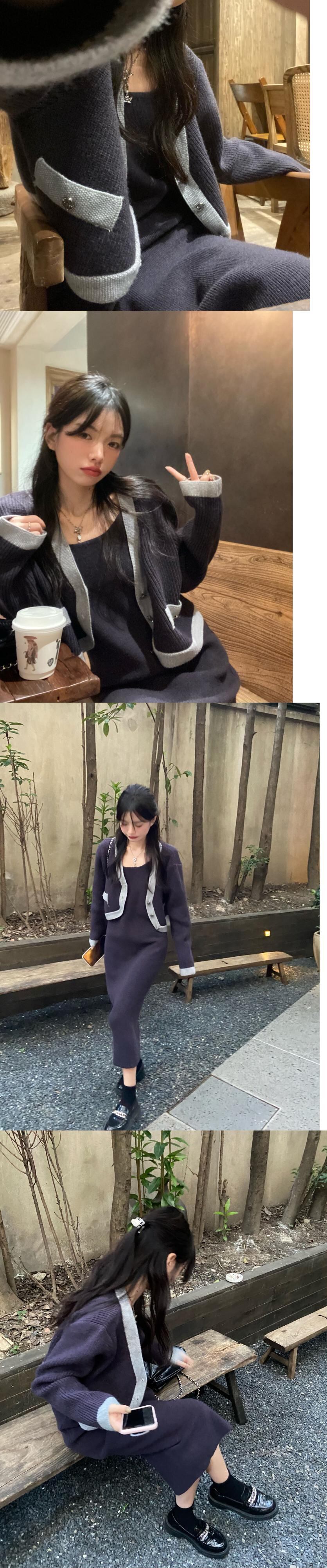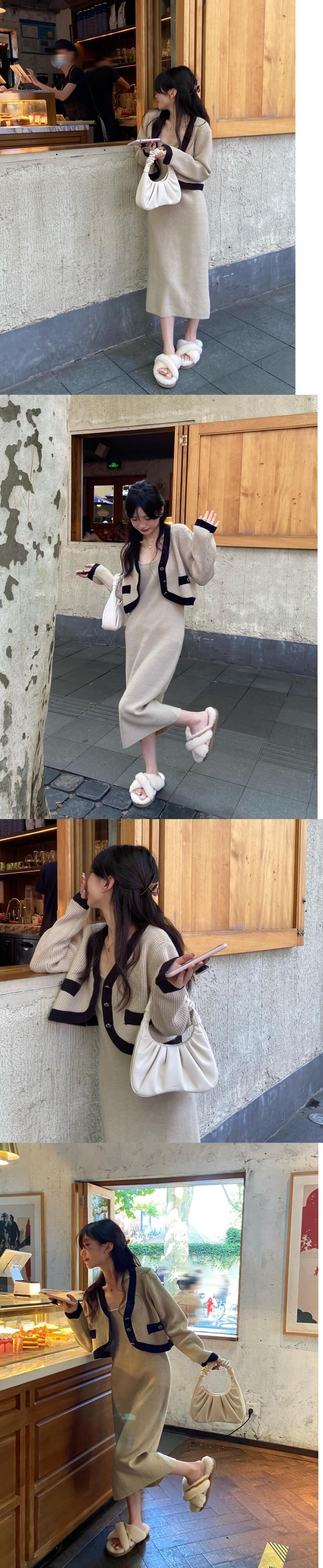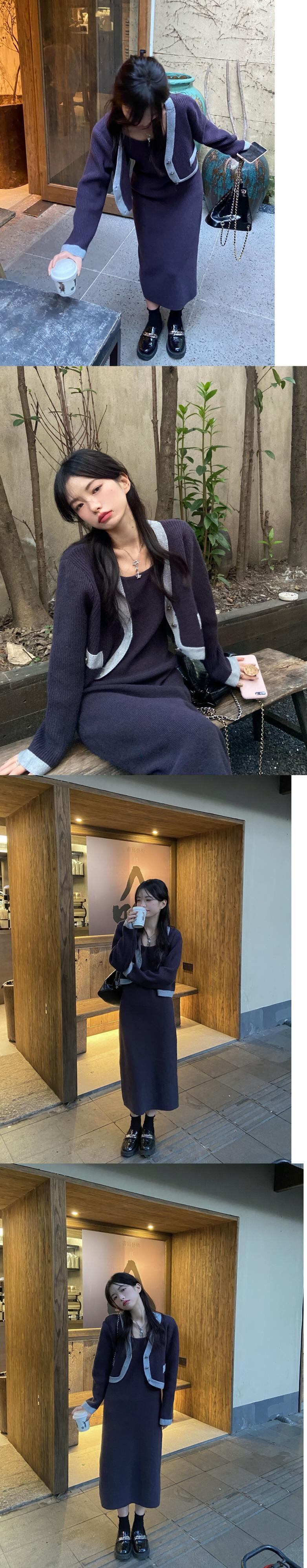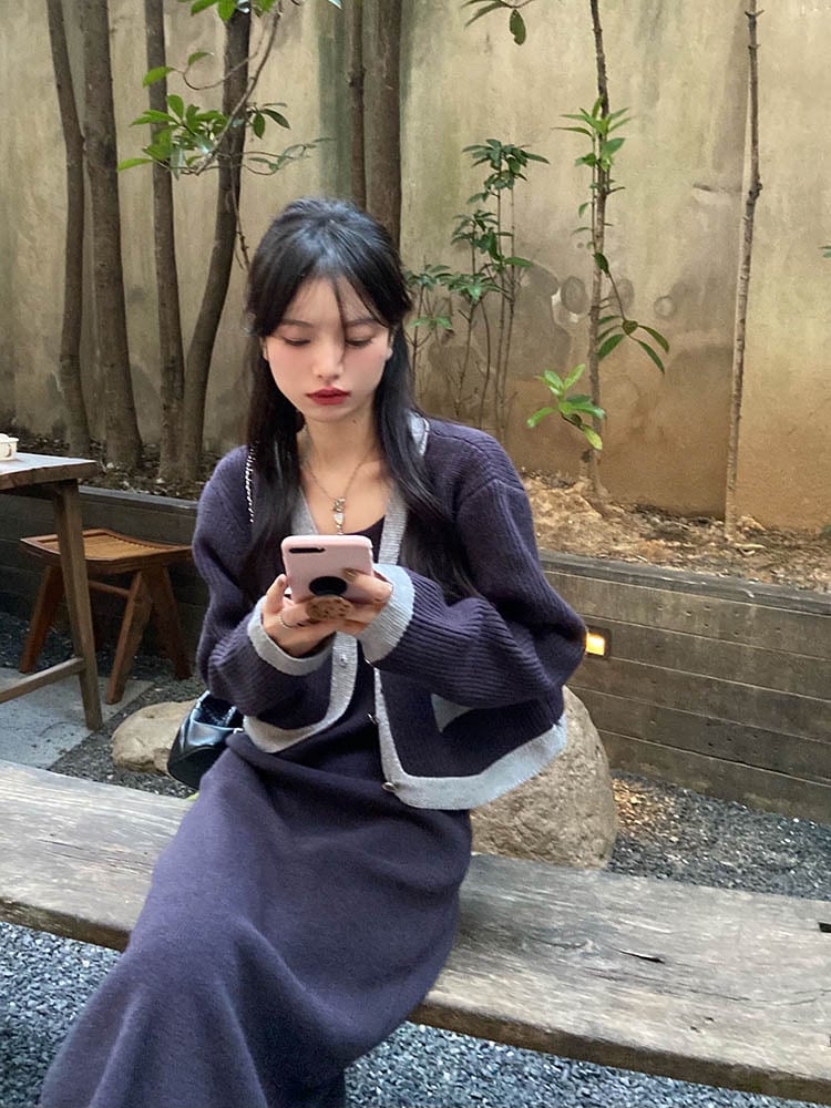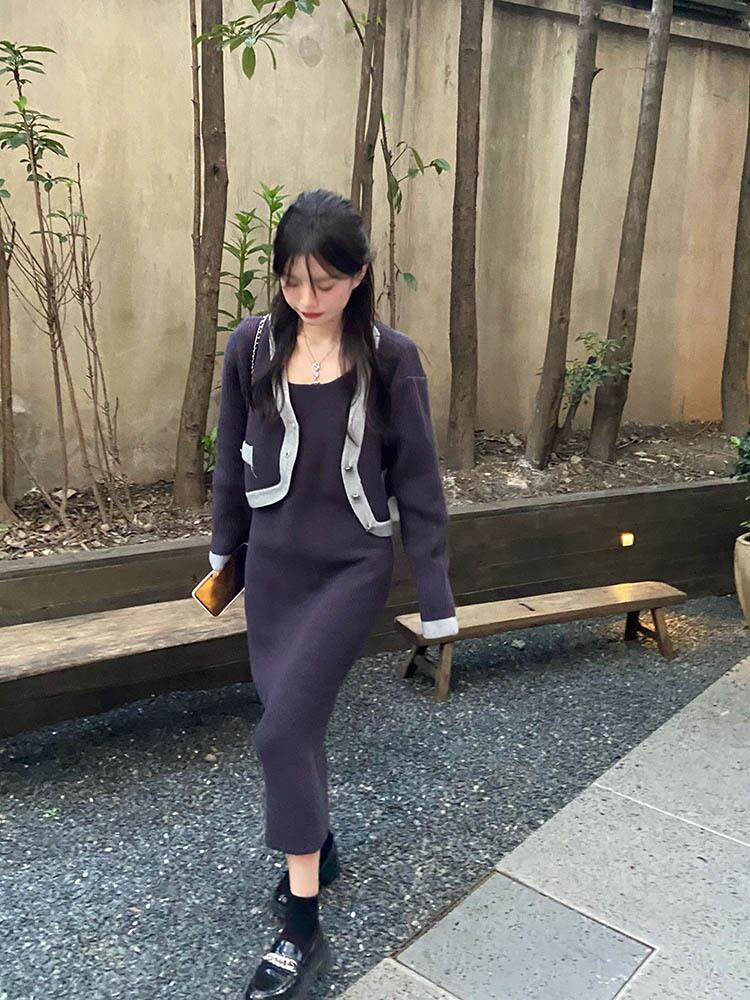 ツーピースセットレディース衣装スモールフレグランスニットスーツソリッド O ネックトップス秋/冬の足首までの長さの服 オータム 秋物 ウィンター 冬物 Oネック ソリッドカラー