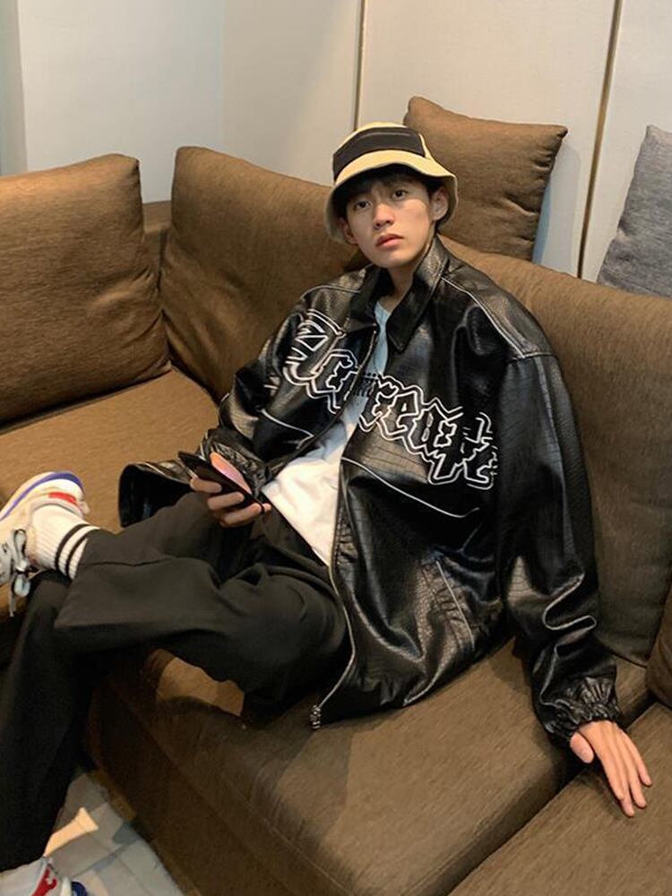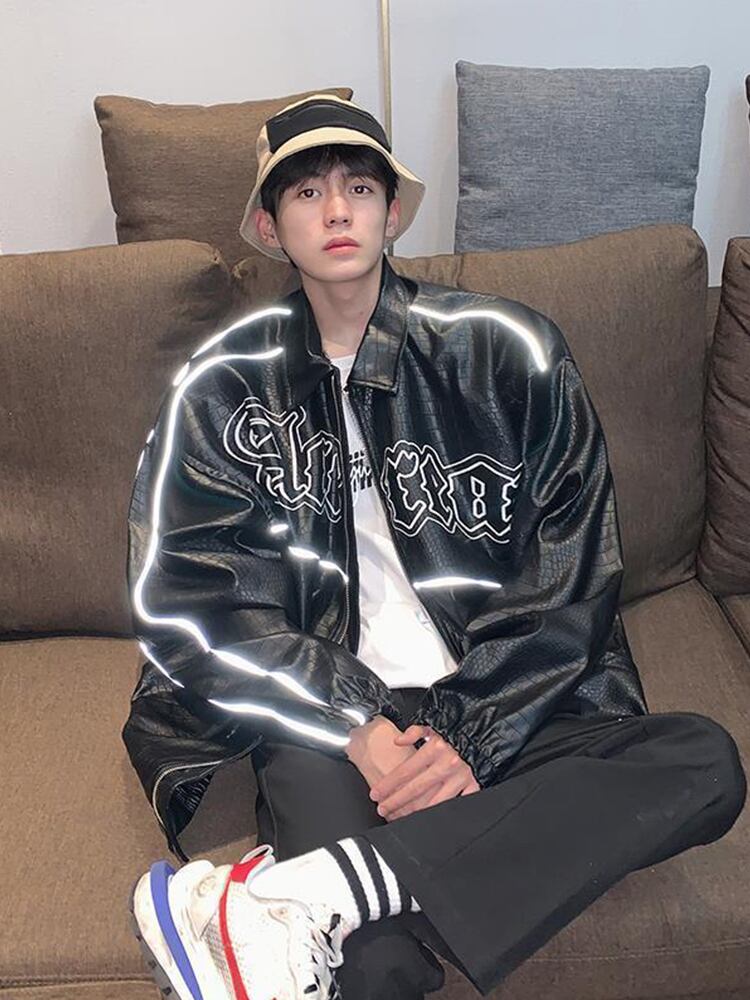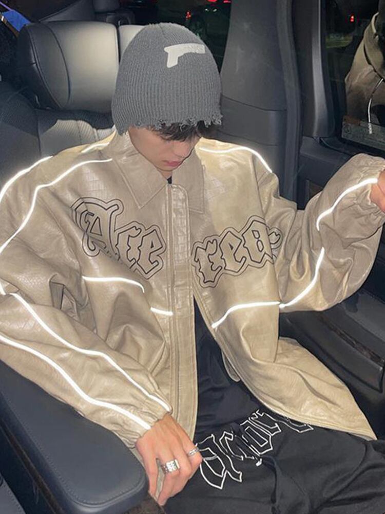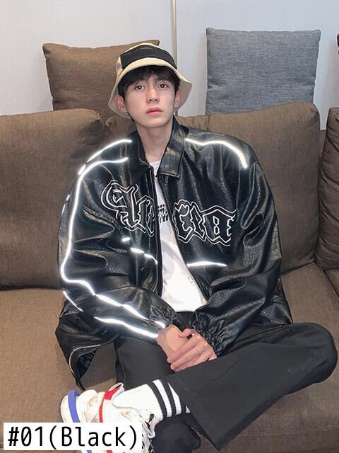 ボンバージャケット PU レザーコートメンズブラック反射ジャケットバーシティジャケット秋冬アウターコート オータム 秋物 ウィンター 冬物