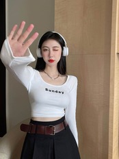 ツーピースセットレディース衣装ショートプリント文字スタイルトッププリーツスカート無地梨花服秋スカートセット オータム 秋物 ソリッドカラー