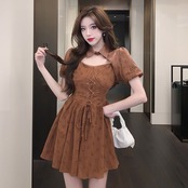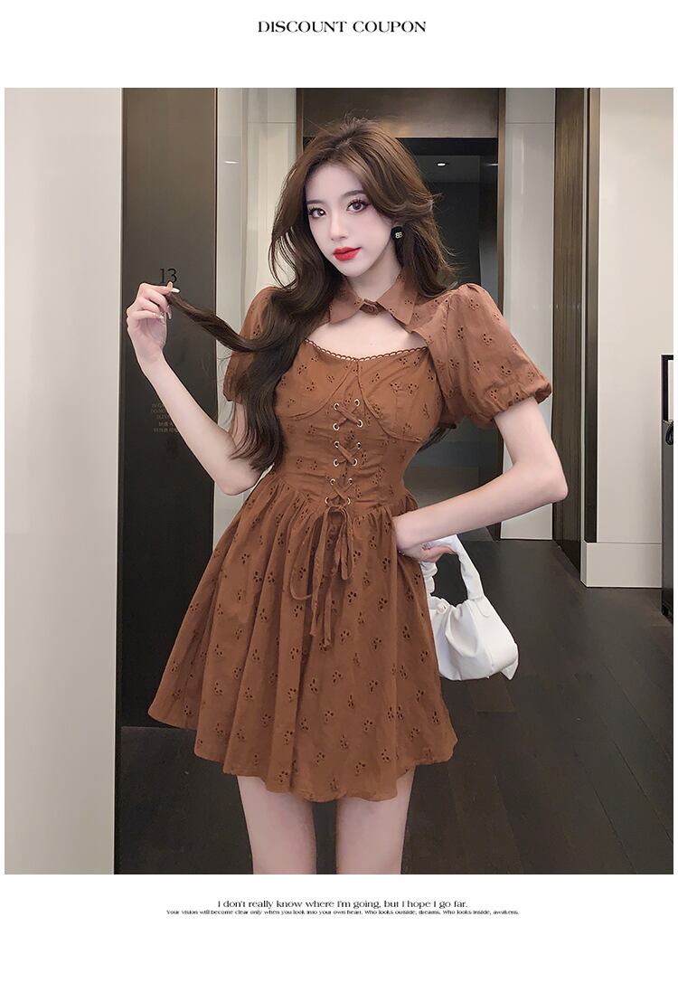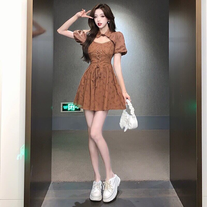 ブラウン ツーピース ドレス 夏 刺繍入り ストラップ シャツ サスペンダー ツーピース スーツドレス レッド サマー 夏物
