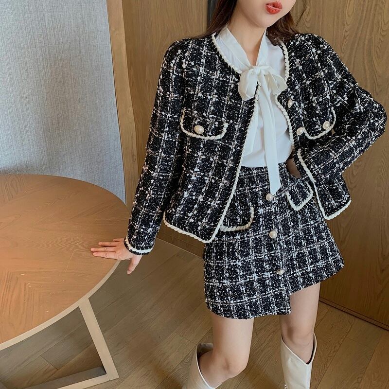 Gothiscyn 冬ののショートスカートセット白シャツ O ネックコート不規則なスカート 3 点セット衣装 ホワイト ウィンター 冬物 Oネック