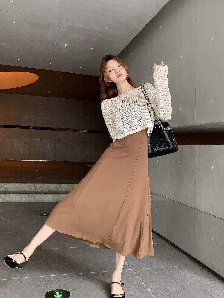 ツーピースドレス セーター + ドレス レトロスーツ 中空日焼け止めブラウス サマーサスペンダー 気質スーツ 夏物