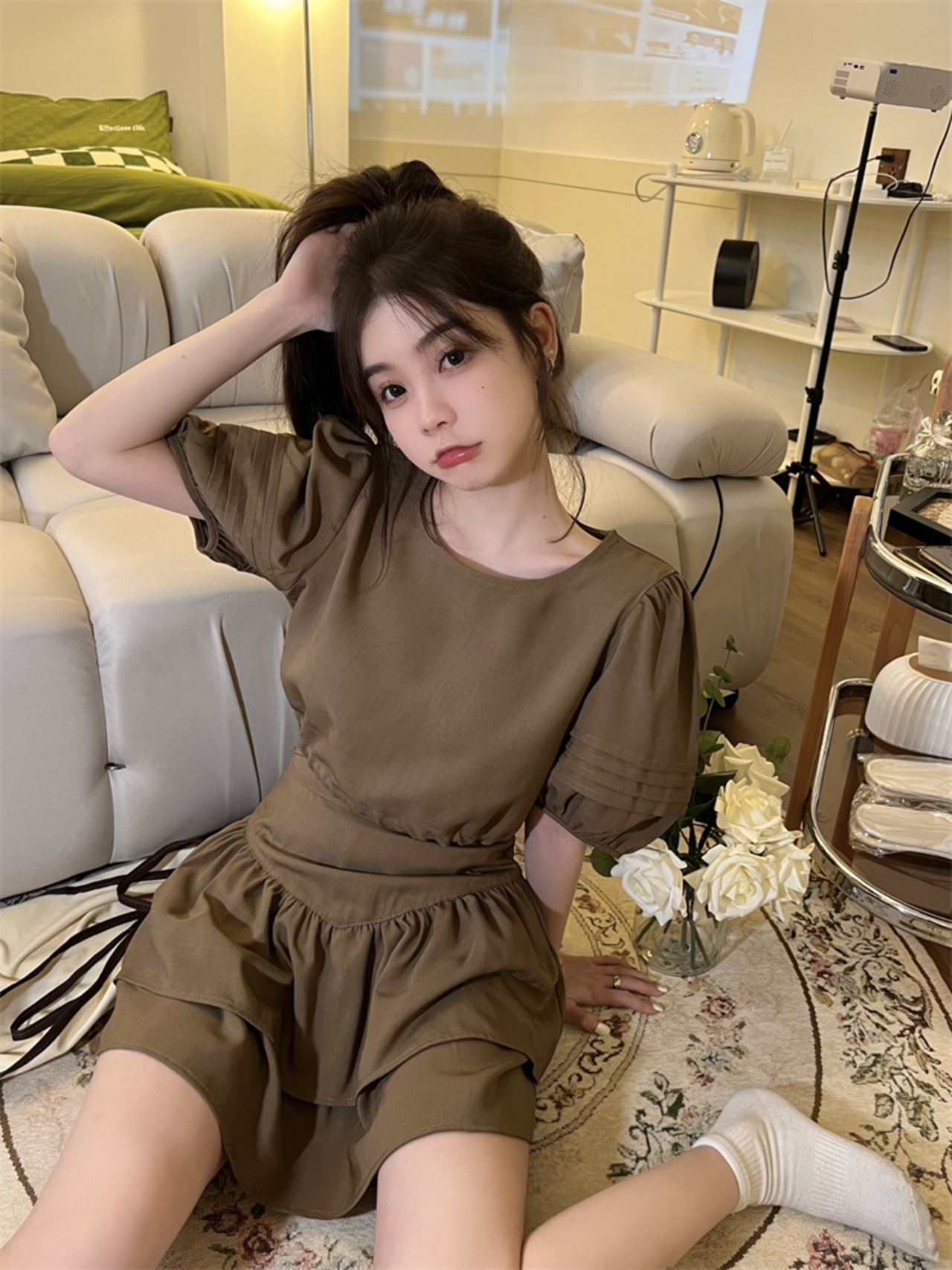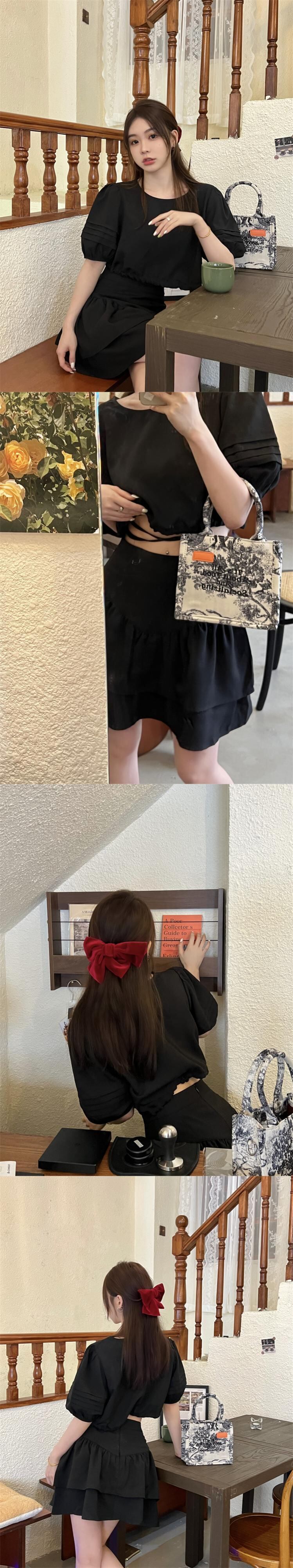 Gothiscyn ホットガールズスーツのパフスリーブトップブラウス夏パフスカートフレンチツーピースセットスーツの衣装 サマー 夏物