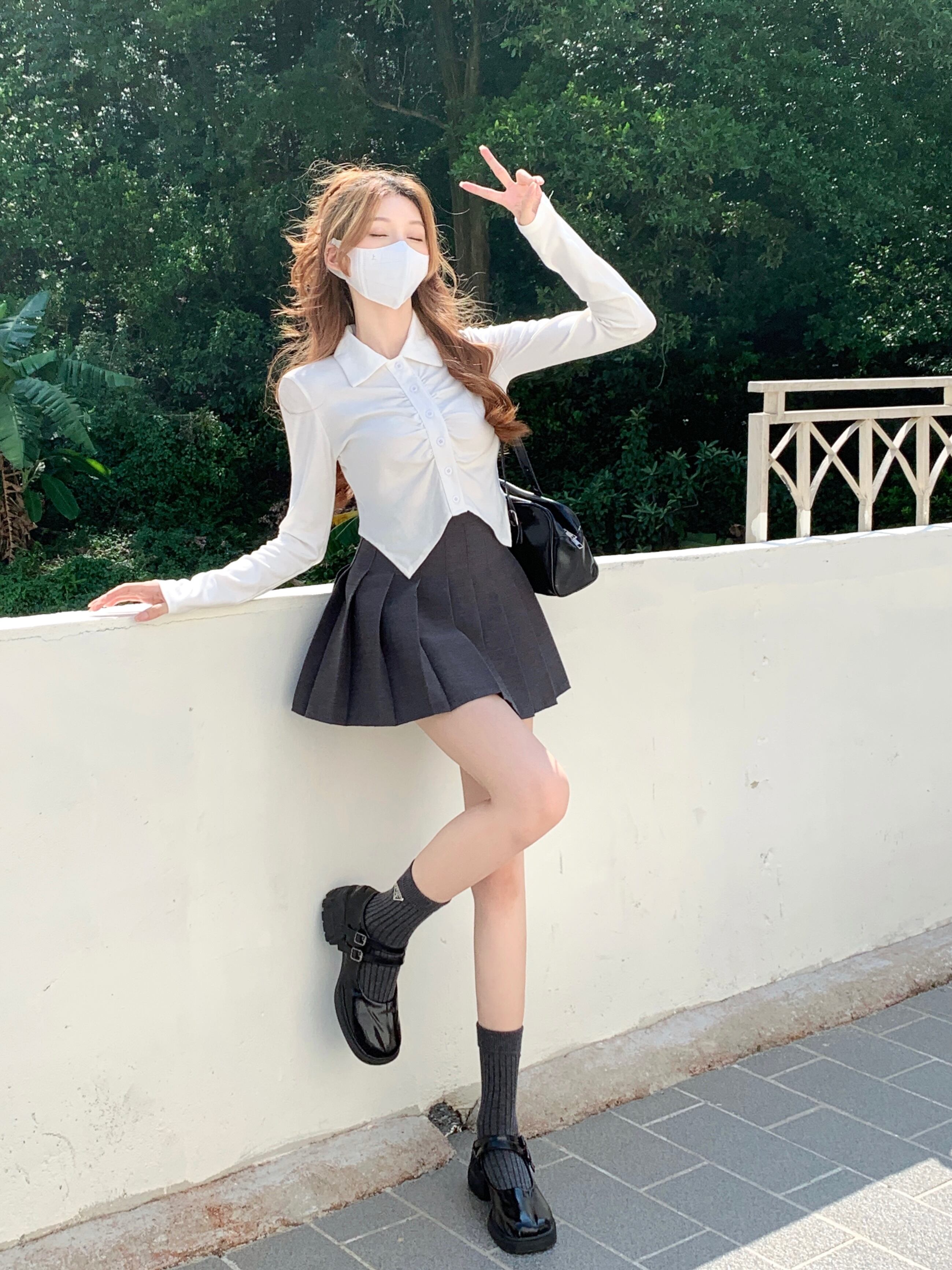 スタイル スーツ レディース ショート イレギュラー シャツ ネクタイ付き グレー Aライン プリーツスカート 2点セット 洋服