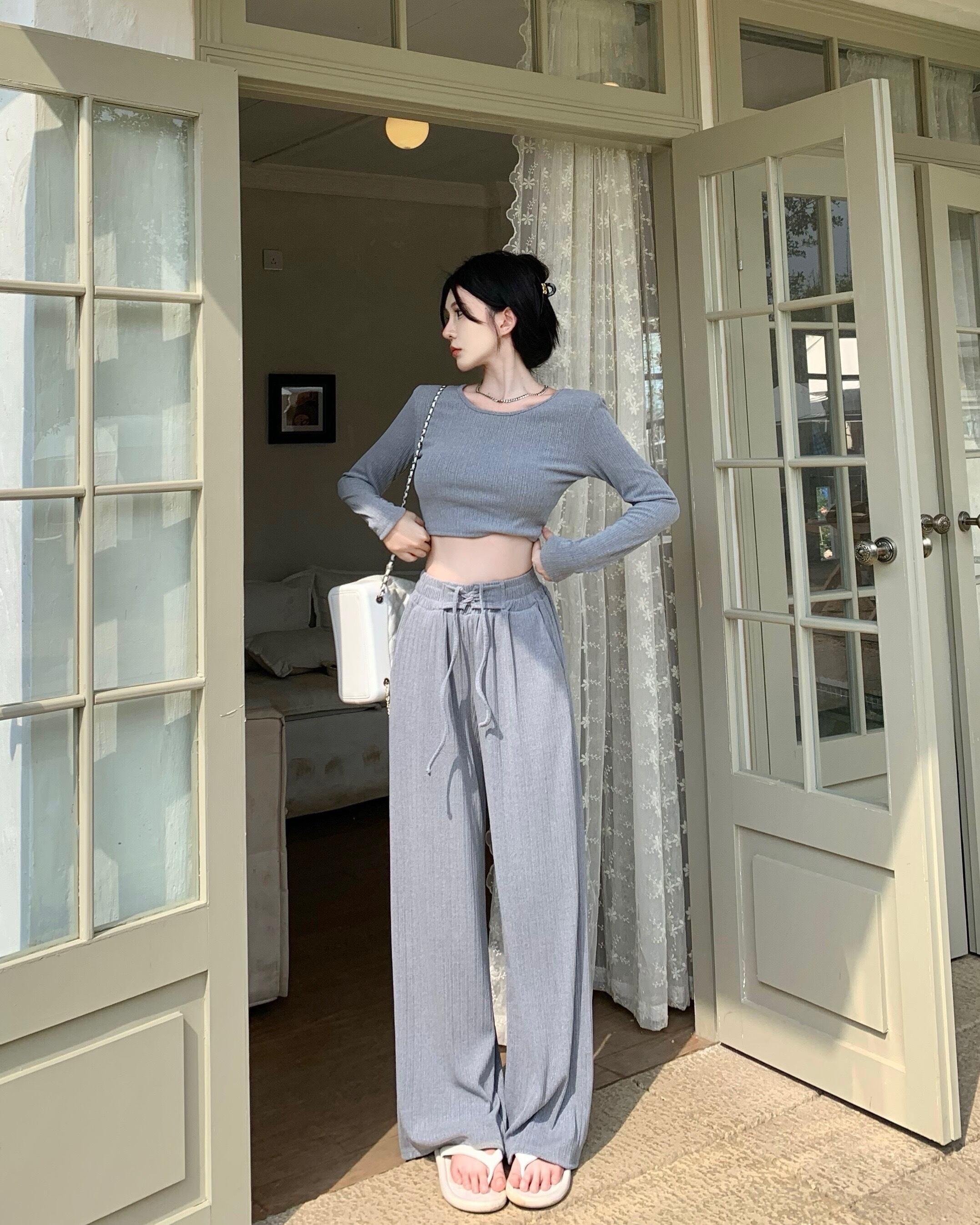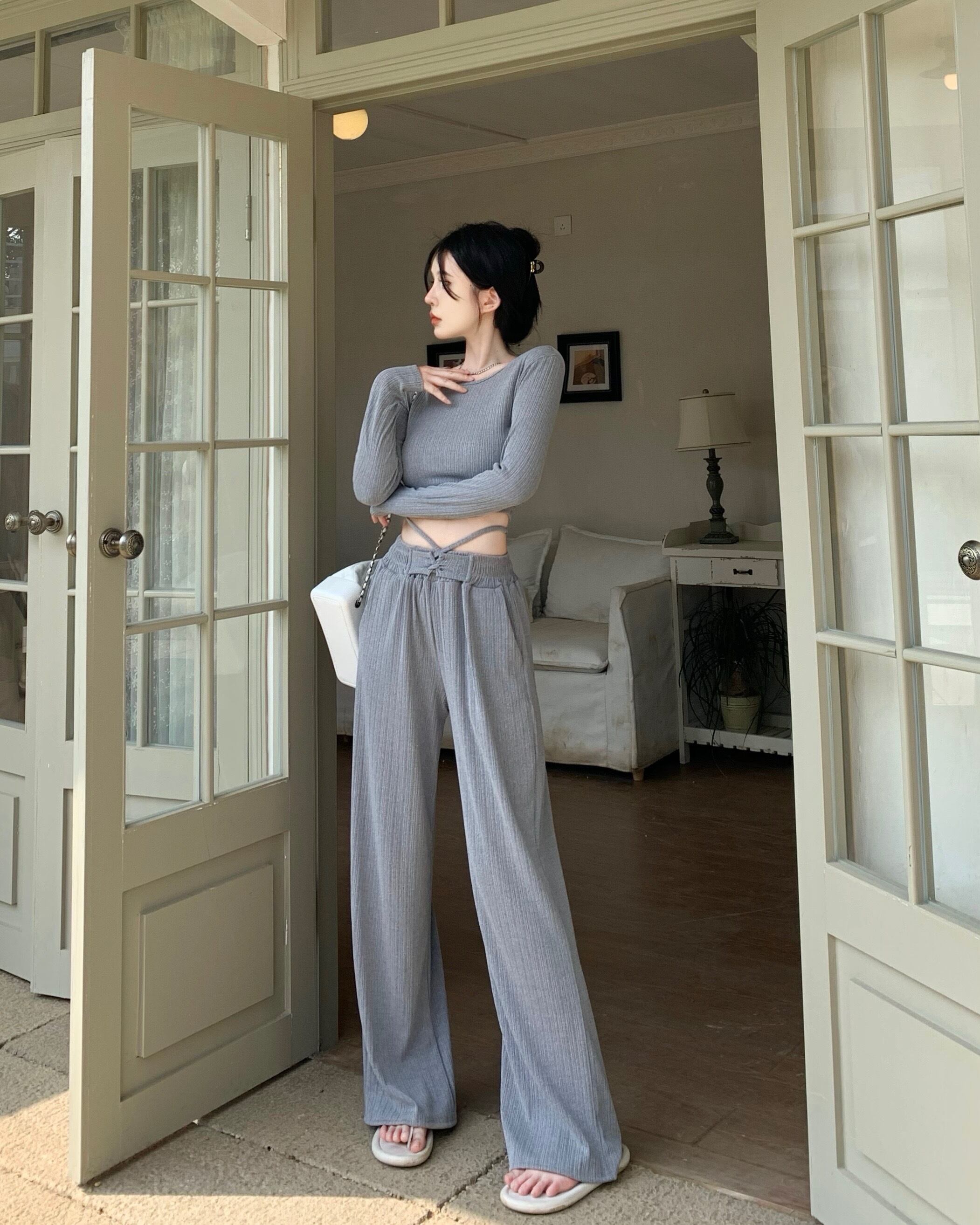 春夏スーツ レディース バックレス くり抜き ショートシャツ ウエスト レースアップ ワイドパンツ 2点セット スプリング 春物 サマー 夏物 ワイドレッグ