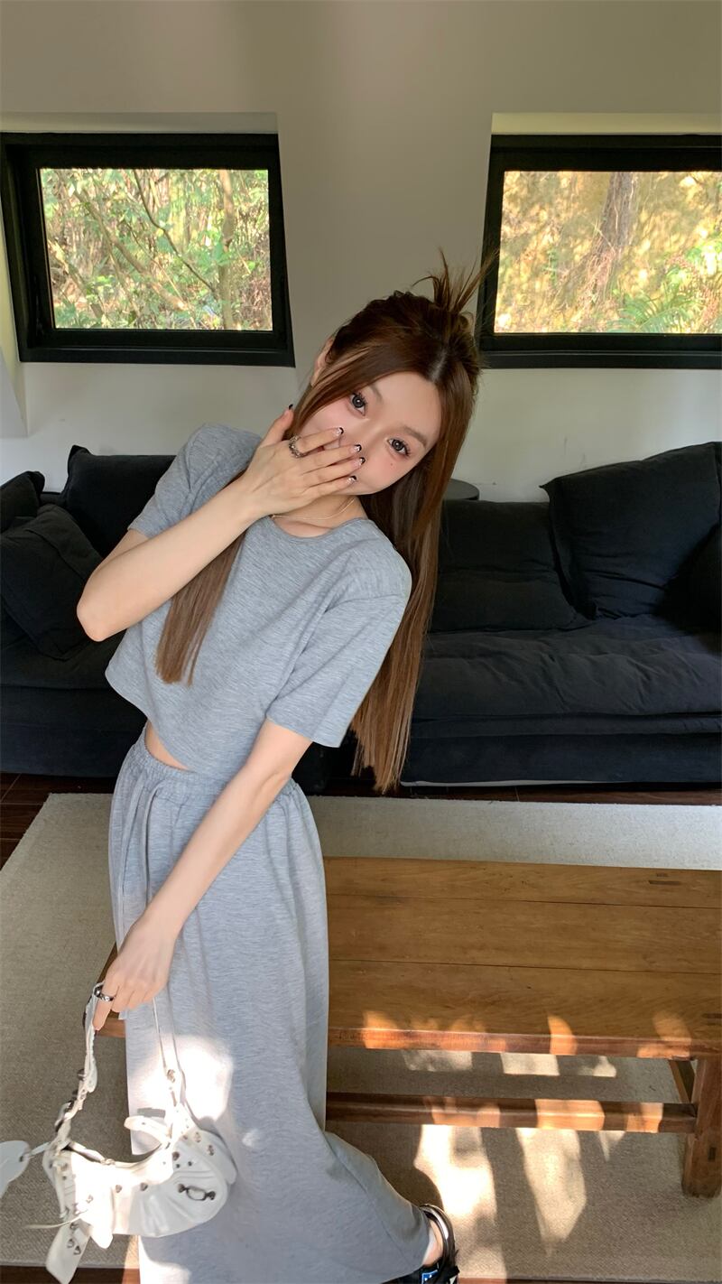 スタイルサマースーツレディース半袖Tシャツトップウエストミドル丈スカートツーピースセット服 夏物