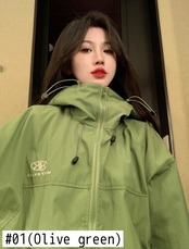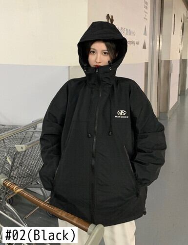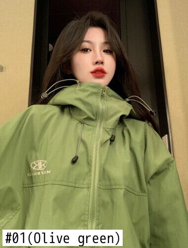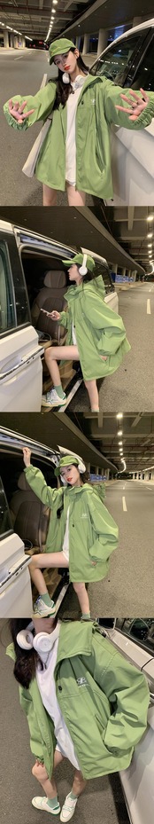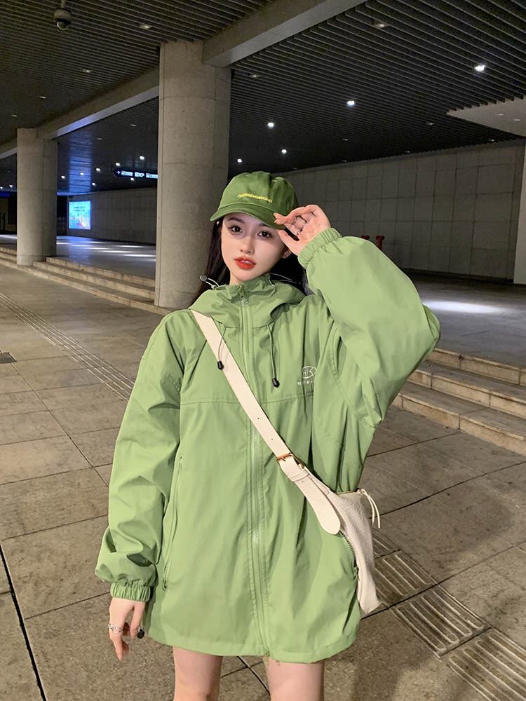 グリーンブレザージッパーフード付きコート冬服原宿フレンチルーズレディース薄いトップ かわいい ウィンター 冬物