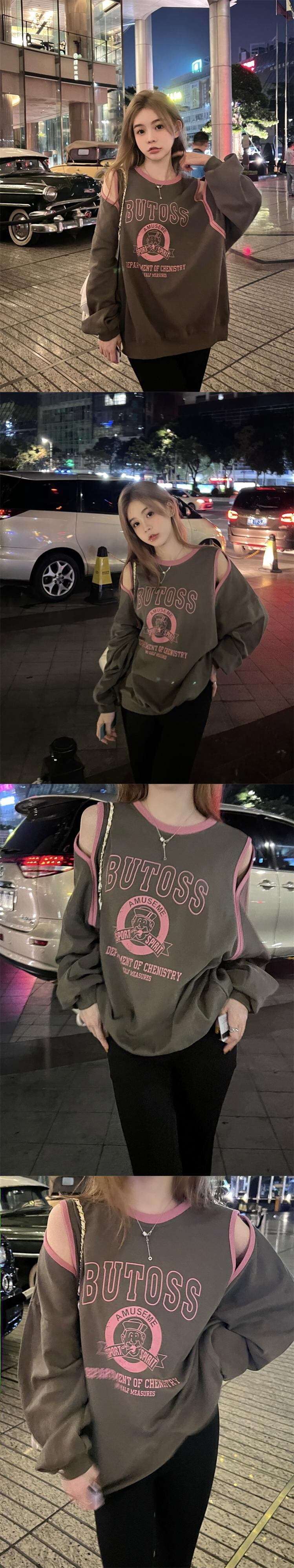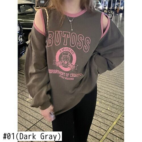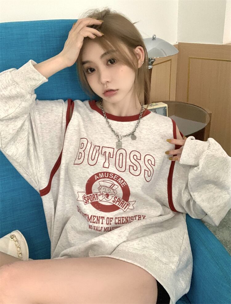 冬服スウェット長袖セーターレタープリントオフショルダープルオーバー O ネック Kpop ルーズ服トップ ロング シャツ ウィンター 冬物 Oネック