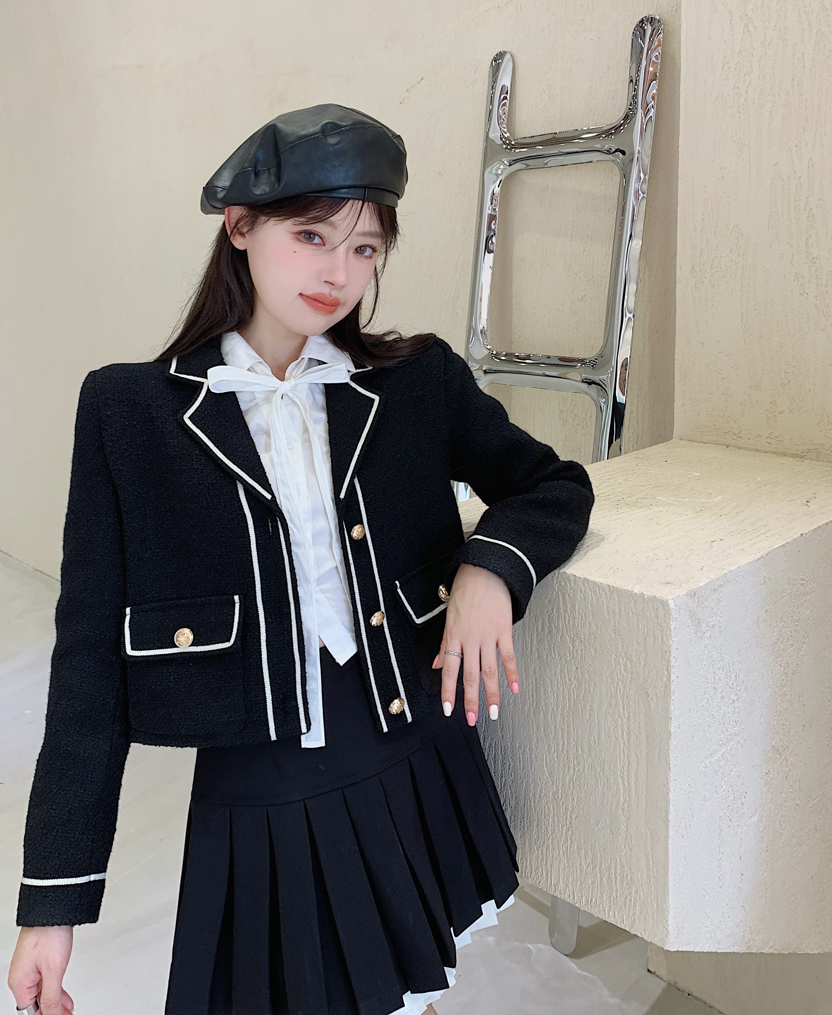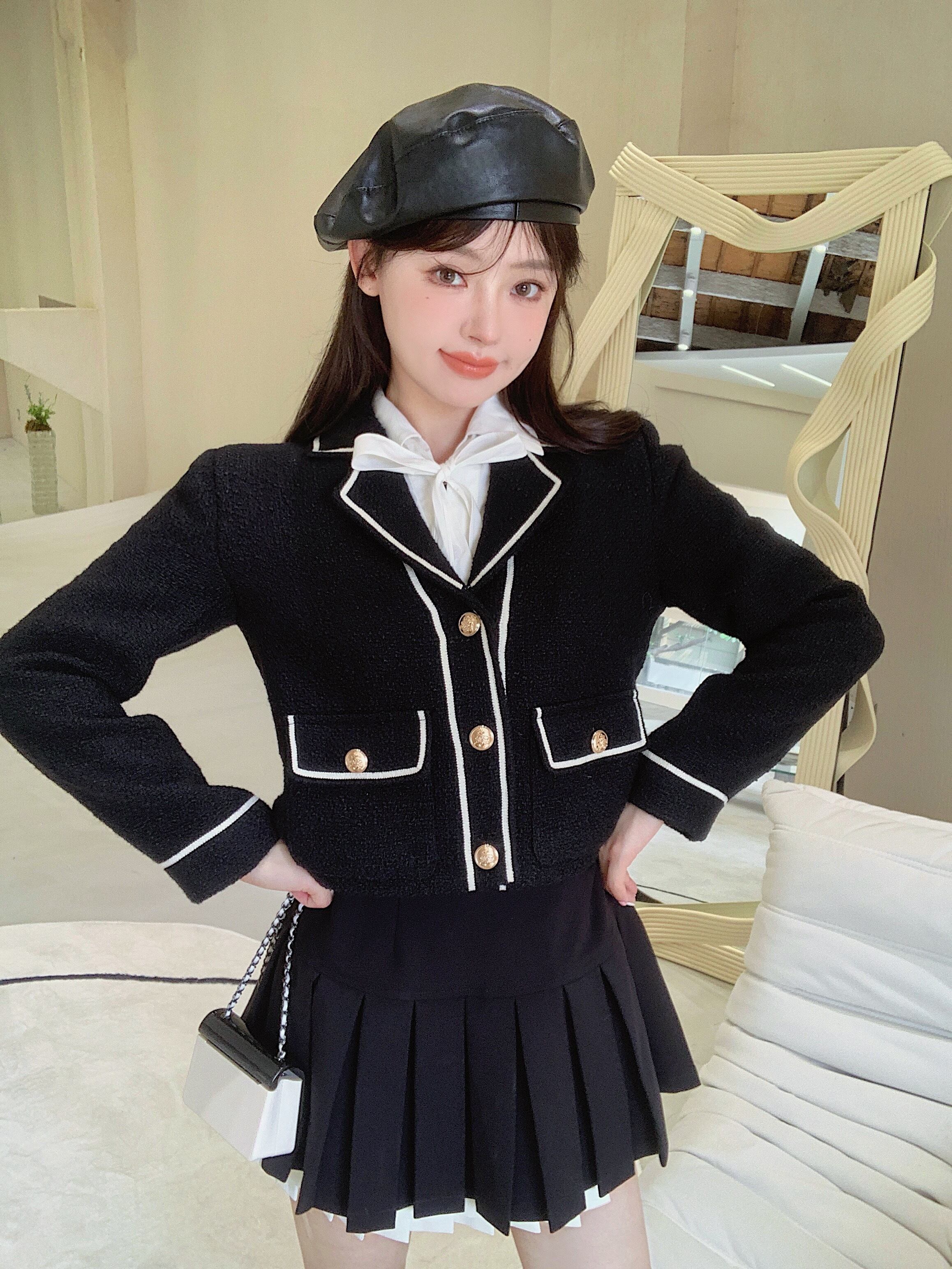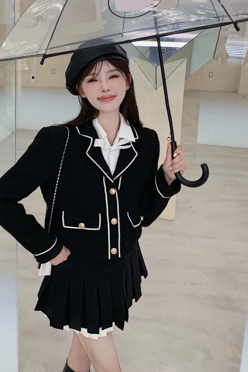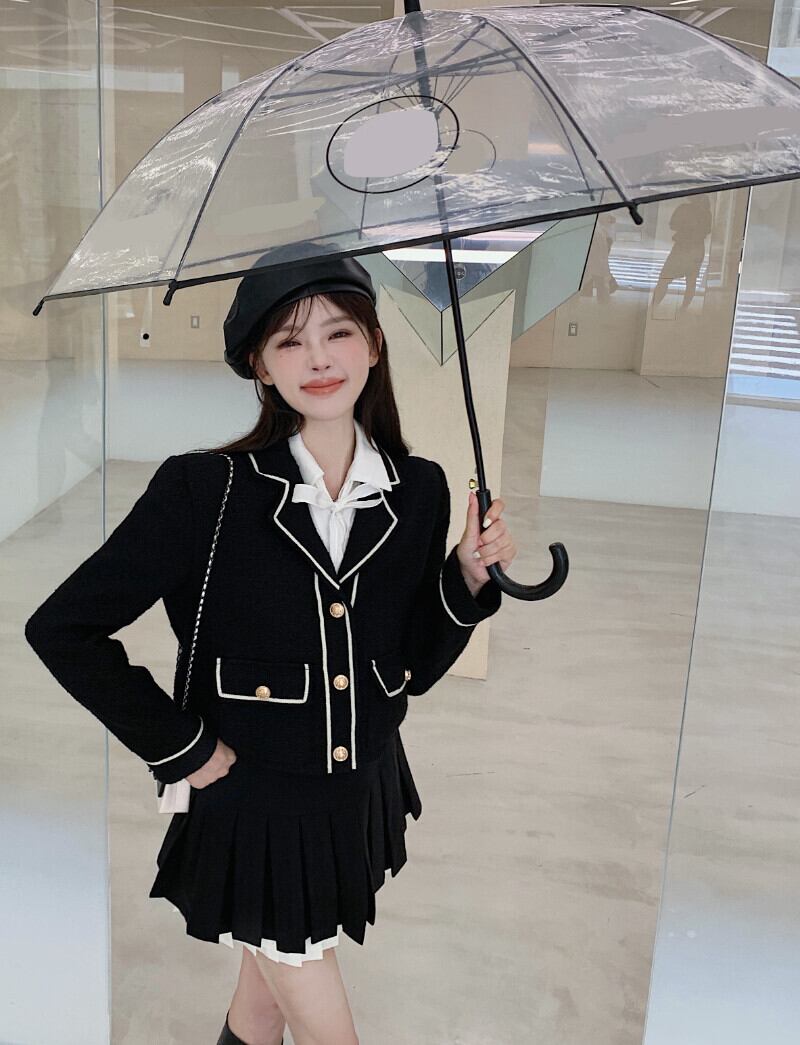 Clフレンチスーツレディース長袖ジャケット万能ウエストショートプリーツスカート2点セット服 ロング