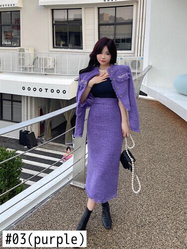 フレンチスタイルセレブスーツ長袖テルツイードショートコートウエストスカートツーピースセット服 ロング