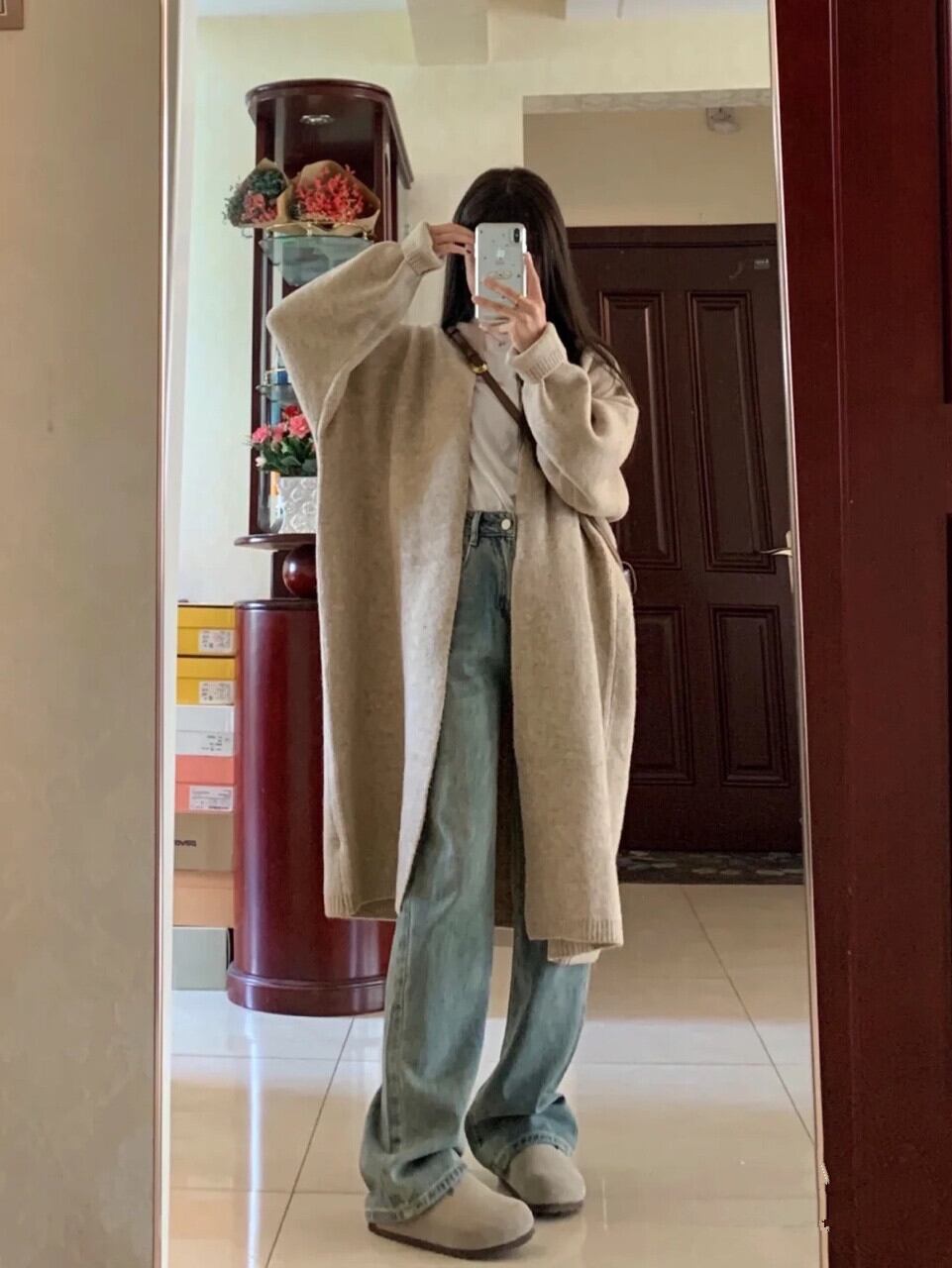 カーディガンルーズフィットセーターオープンステッチカーディガン V ネック特大長袖トップ甘い服春/秋セーター ロング 大人ガーリー スウィート キュート カジュアル スプリング 春物 オータム 秋物 Vネック