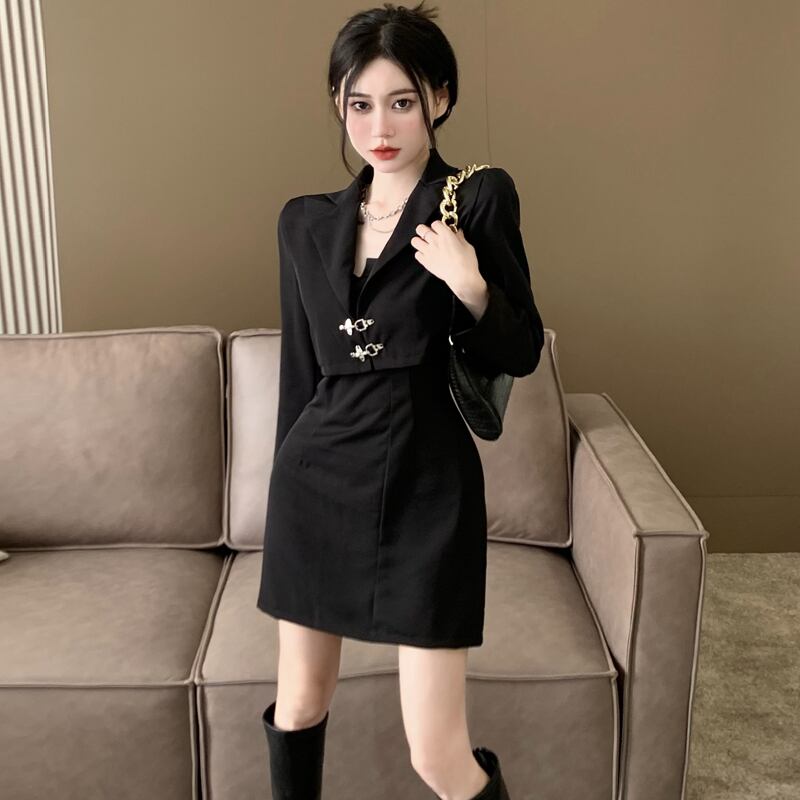 オフィスレディ通勤スーツショートジャケット春不規則なスリムサスペンダードレス 2 点セット服 スプリング 春物 会社 学校 通勤や通学にも