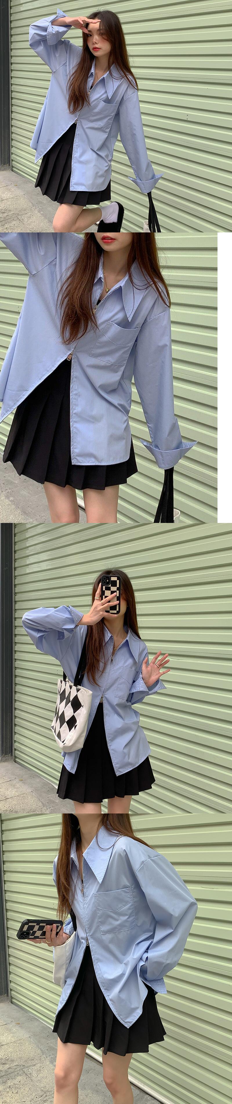 白シャツコットンジッパーブラウスシャツ因果トップスタイル長袖無地ブラウス緩いレディース ロング ホワイト ソリッドカラー