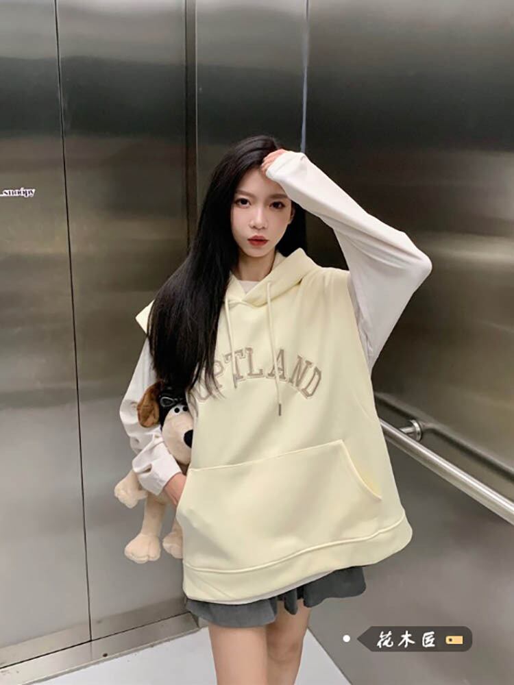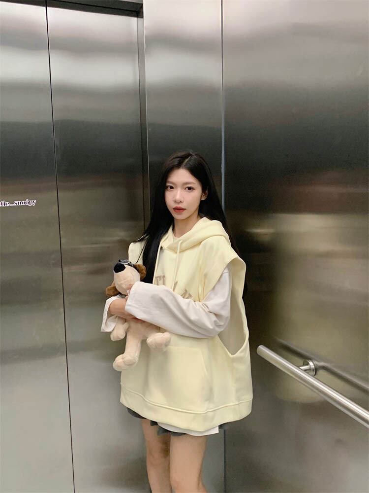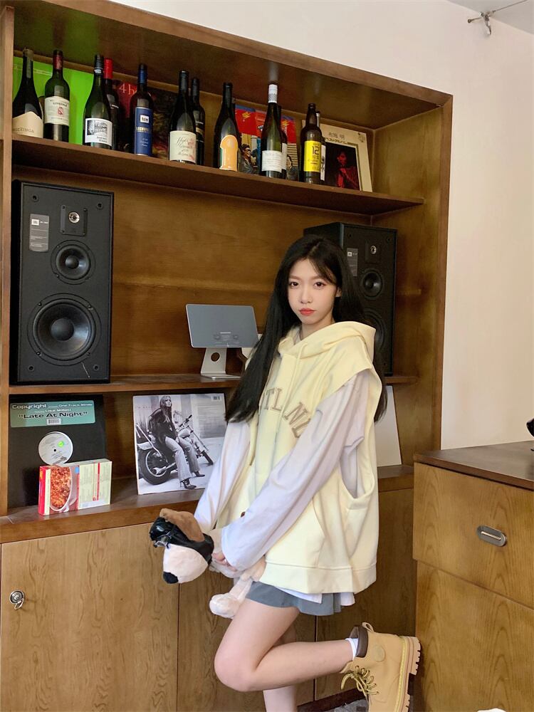 冬服巾着フード付きベストパーカールースノースリーブパーカープルオーバー手紙 Cual 服トップス ウィンター 冬物