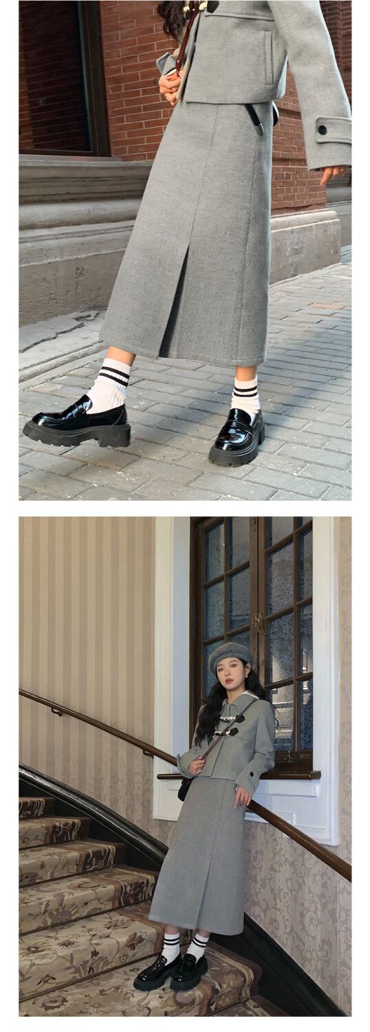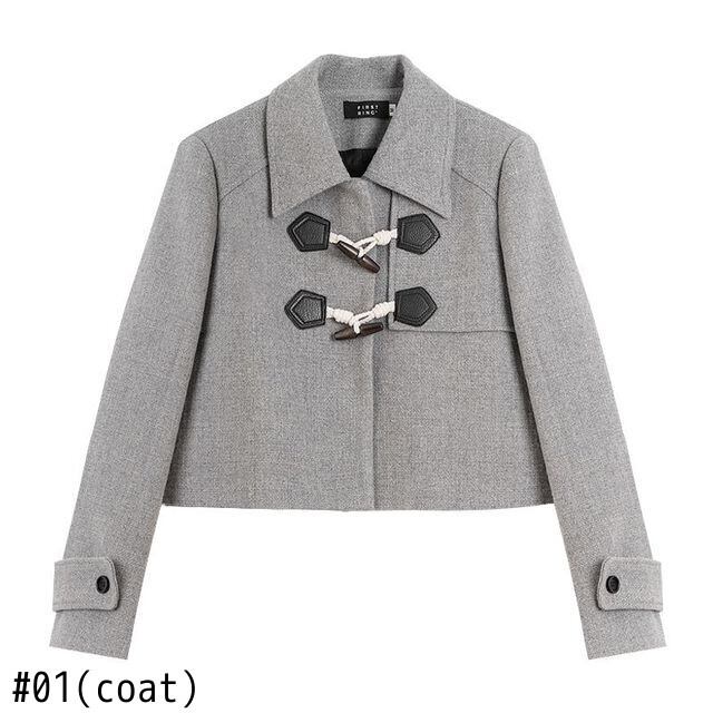 Style コミュータースーツ レディース グレー ホーンボタン キルティング コットンコート ウエストスカート 2点セット 洋服