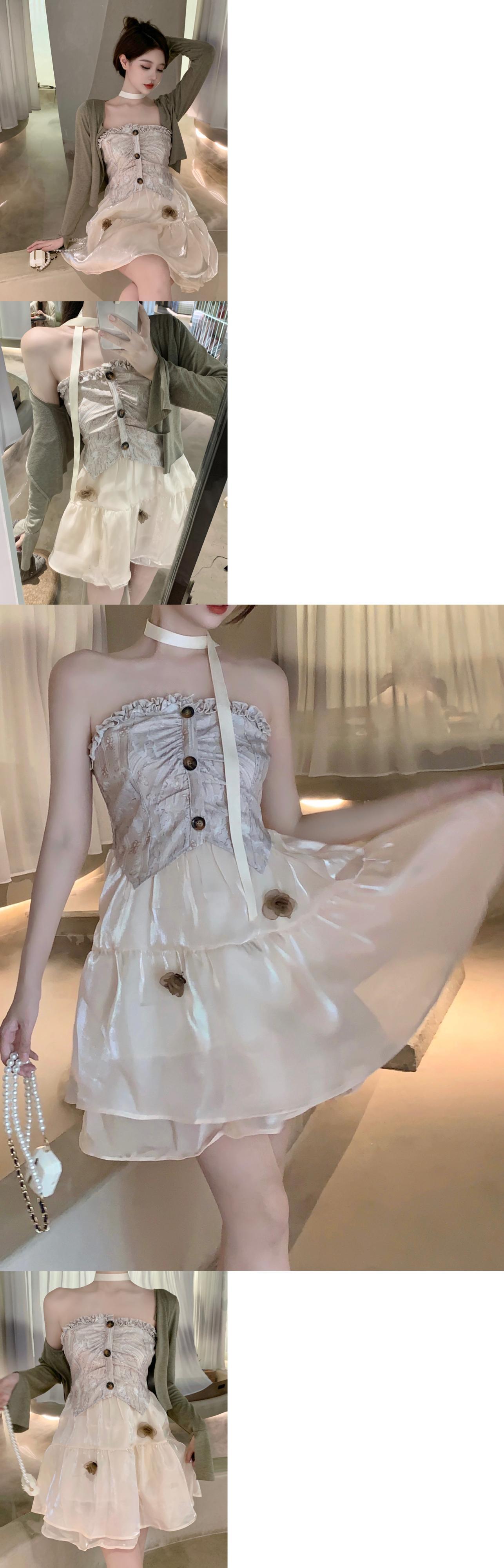 ドレス ツーピース スーツ サマー チューブ トップ ドレス ショール ニット スモール コート レディース ツーピース セット 夏物