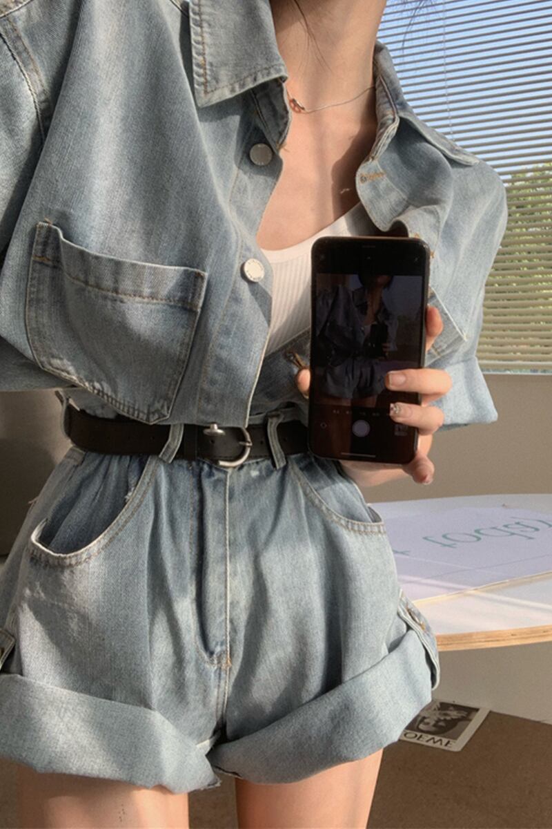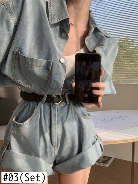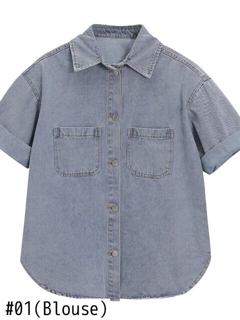 Gothiscyn デニム カーゴ スーツ スーツ 夏 ルーズ シャツ ジャケット ショーツ 2点セット サマー 夏物 ブルマー