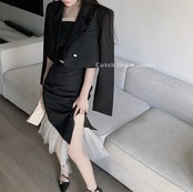 夏オフィスレディ通勤スーツメッシュストラップトップウエストマーメイドスカートショートコート 3 点セット服 サマー 夏物 会社 学校 通勤や通学にも