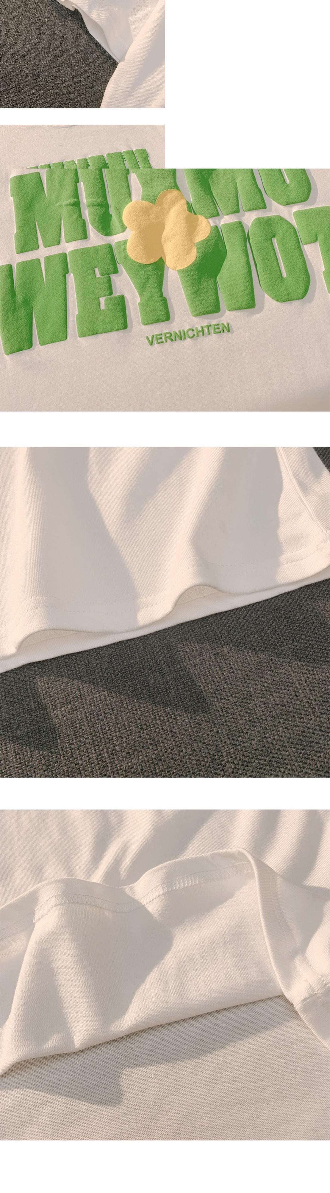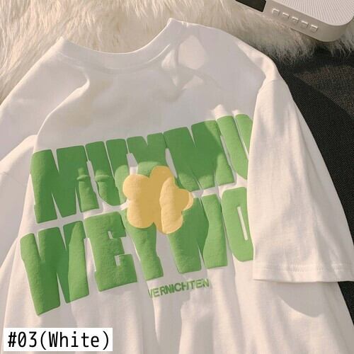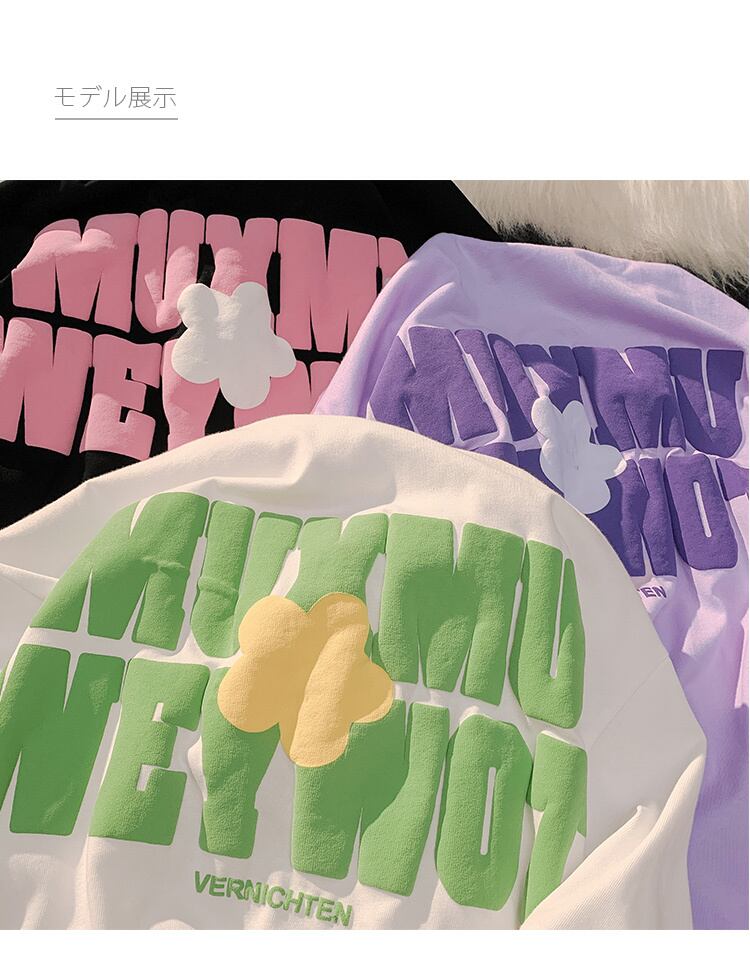 ブルーストロベリーコットンレターフラワーTシャツレディースサマーラウンドネックルーズ半袖トップ服 夏物 Oネック フラワーデザイン