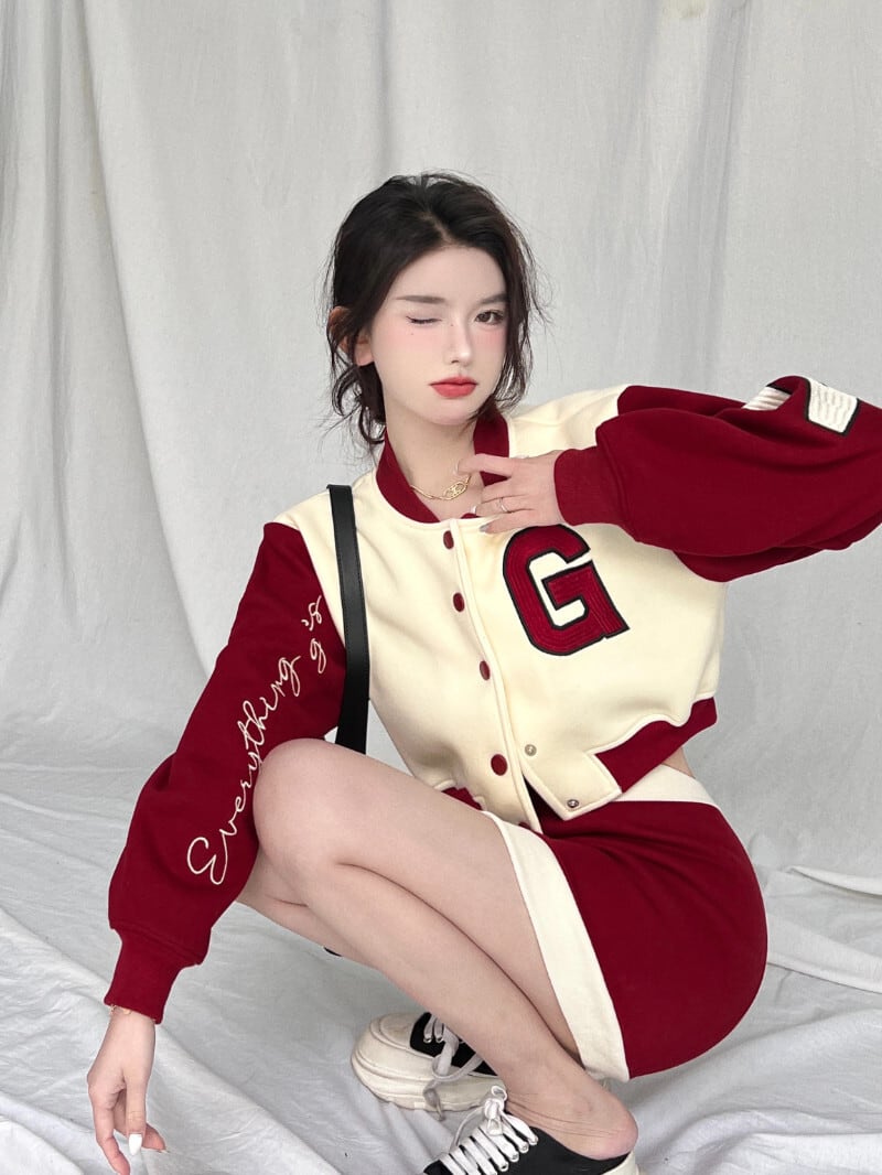 スタイル甘いクールスーツ野球スポーツ ショート コート ウエスト ラップ ヒップ スカート 2 点セット服 大人ガーリー スウィート キュート カジュアル