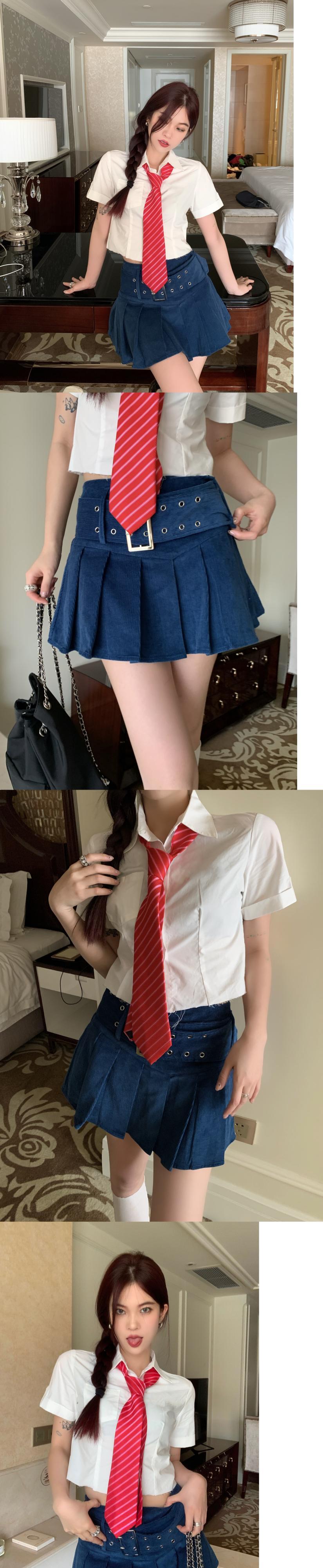 Gothiscyn プレッピー スーツ ツーピース セットショート シャツ トップ夏プリーツ スカート Y2k スカート セット サマー 夏物