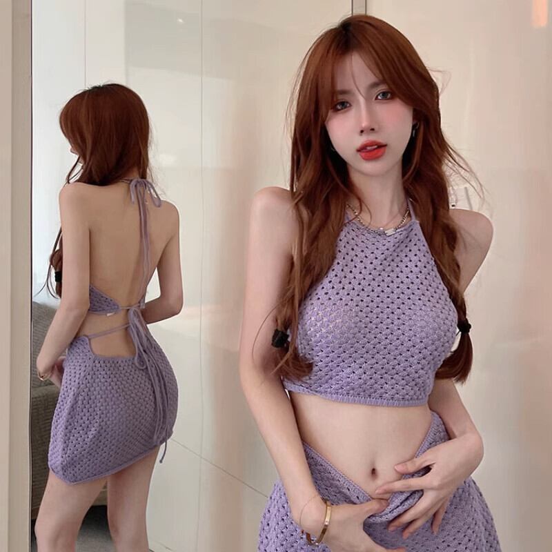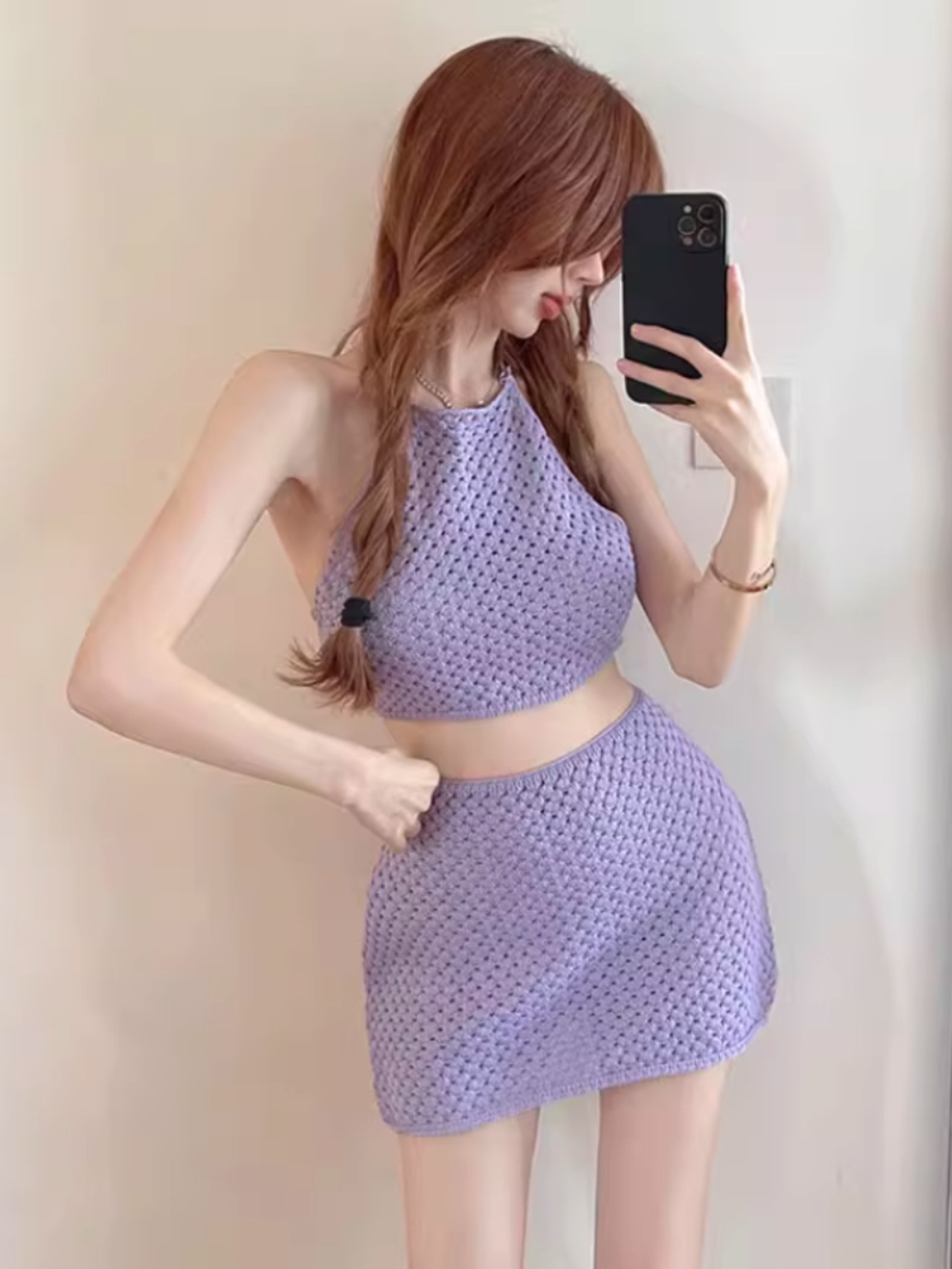 ホットガールズスーツホルターバックレスストラップタンクトップスリムフィットラップヒップニットミニスカート 2 点セット服