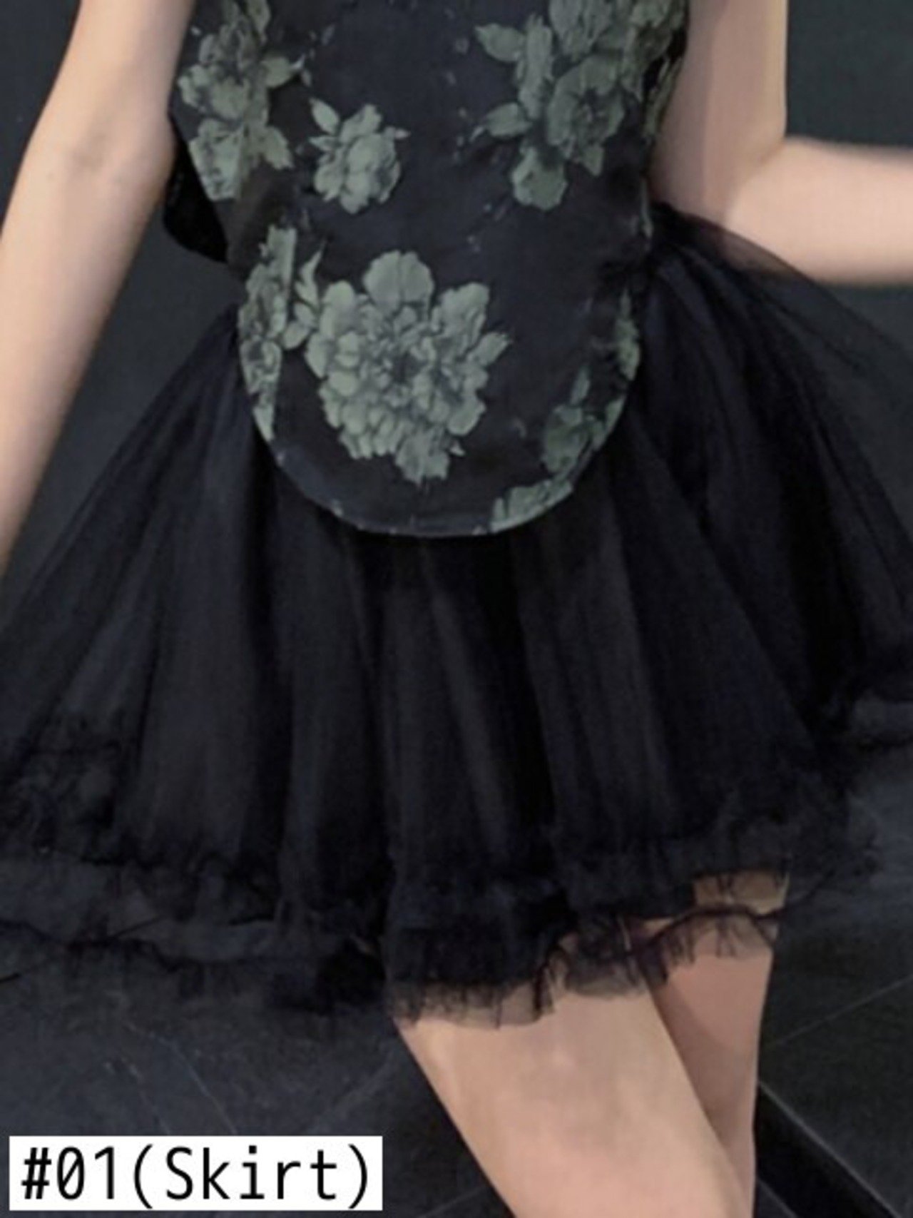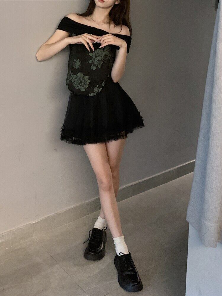 Gothiscyn レディース スーツ ワンショルダー トップ 夏 メッシュ チュチュ スカート ブラック スカート ツーピース 優しい Vestidos サマー 夏物 パニエ ペチコート