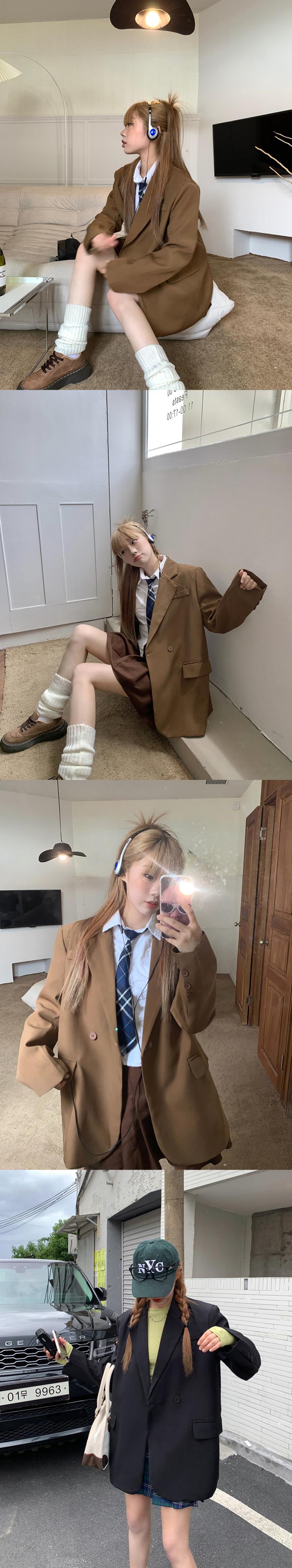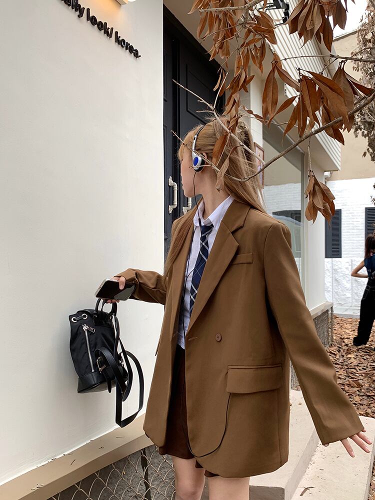 ブレザー Femenino ミディアム ロング 無地 ブレザー 英国風 小さめ スーツ ジャケット ノッチド レディース LOOSE 秋冬 オータム 秋物 ウィンター 冬物 ソリッドカラー