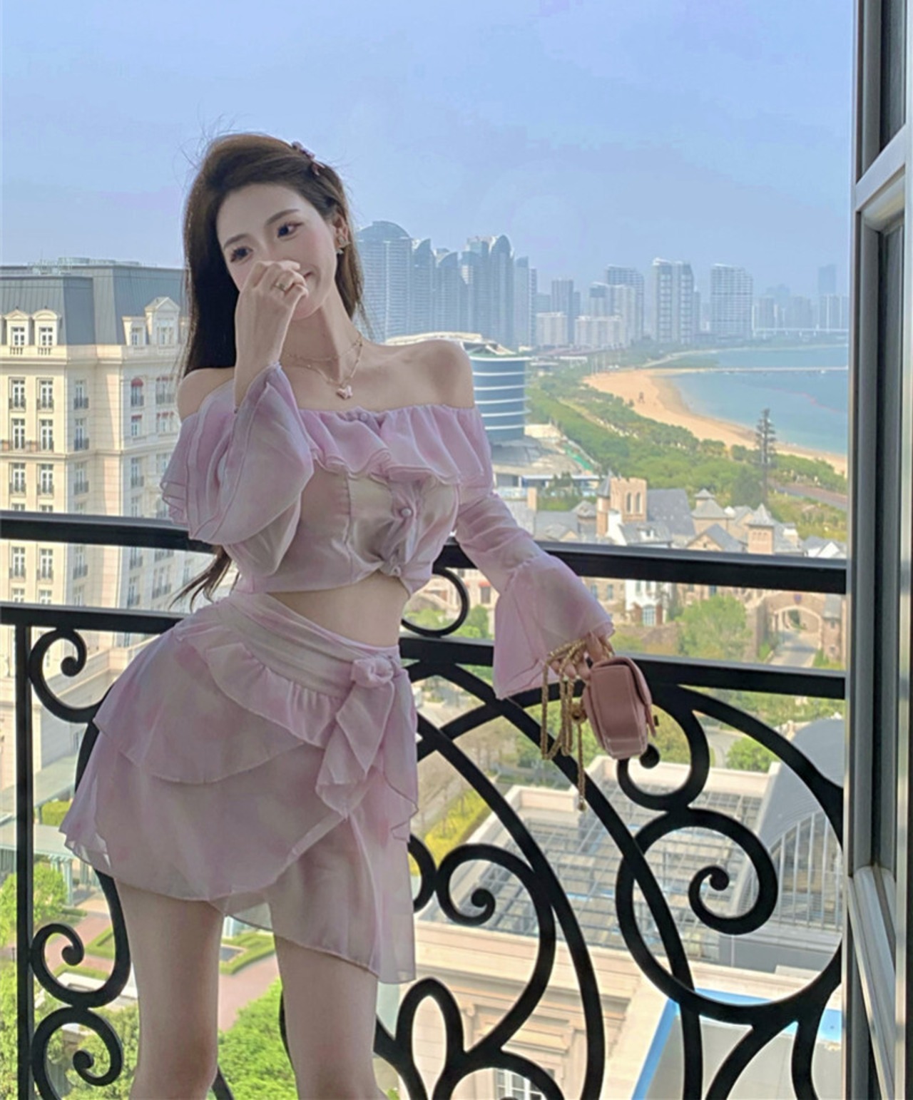 純粋セクシー甘いホットガールスーツ絞り染めショートトップウエストスリムフィットスカートツーピースセット服 大人ガーリー スウィート キュート カジュアル