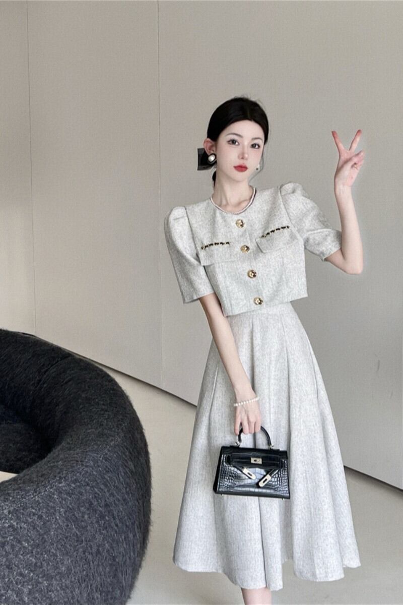 ロング スカート セット夏ショート コート スカート ロイヤル シスター スタイル シャツ スーツ スカート ツー ピース サマー 夏物