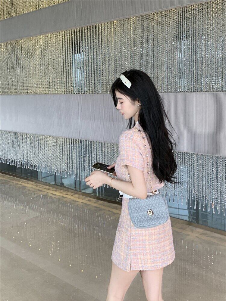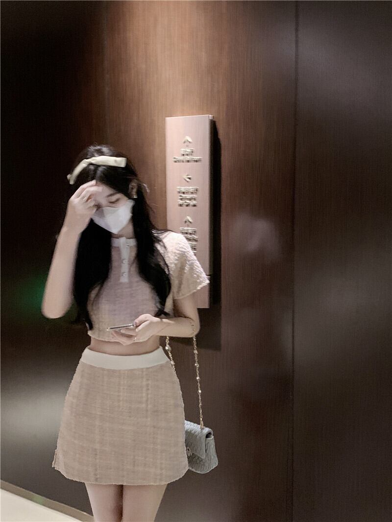 Gothiscyn スーツ半袖 Tシャツクロップトップスリットスカート夏ツーピースセット衣装ストリートスーツ ショート ハーフスリーブ サマー 夏物