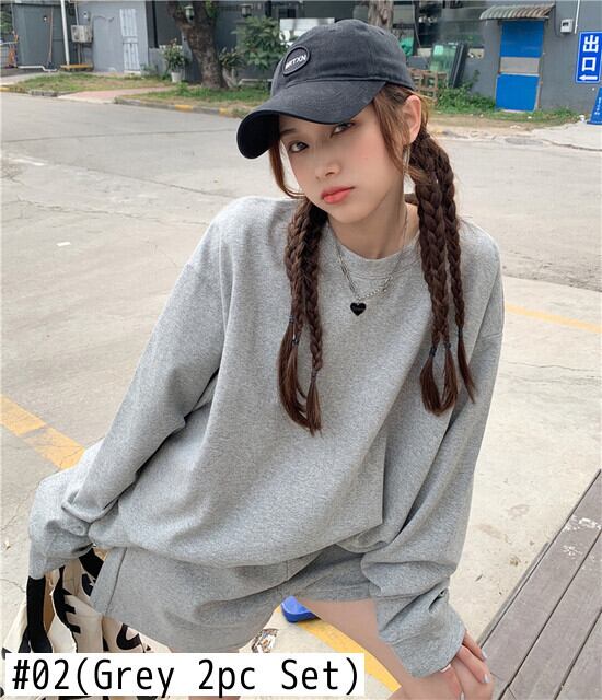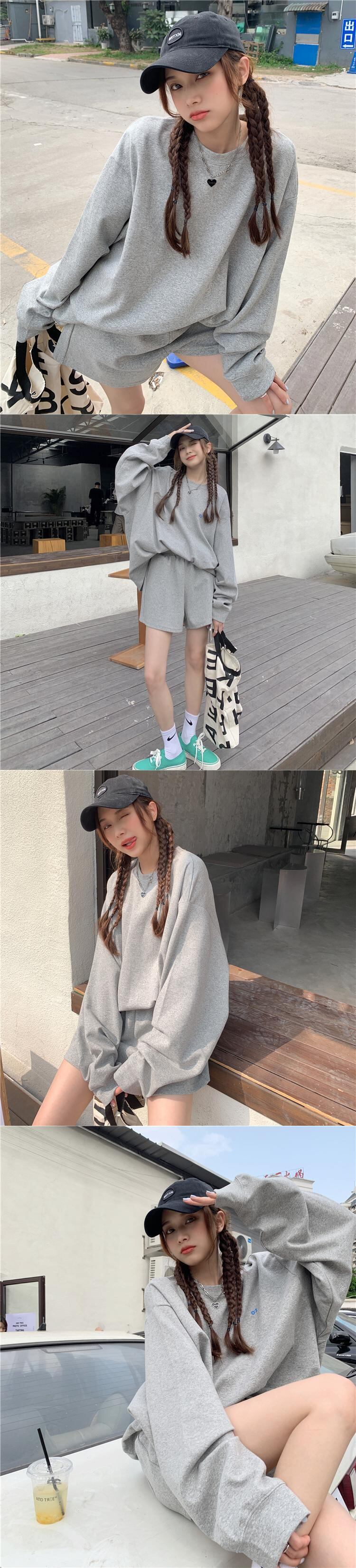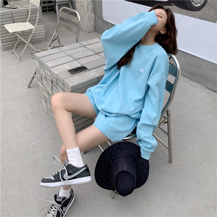 綿スーツスウェットシャツ + ショーツ怠惰ピンク長袖スウェットシャツスーツ秋ルーズプルオーバートップ ロング コットン オータム 秋物 ブルマー