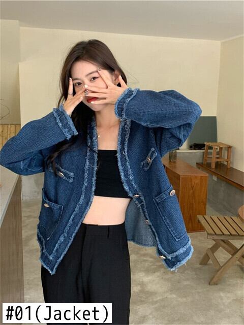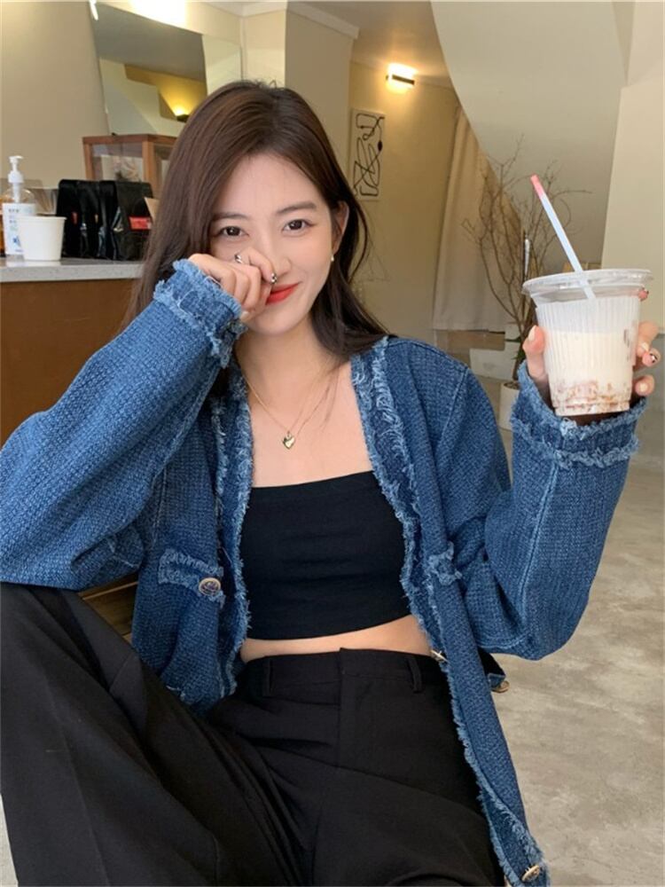 Gothiscyn ホットガールショートデニムジャケット春秋ルーズファーエッジセンスジャケットトップレトロ服コート スプリング 春物 オータム 秋物