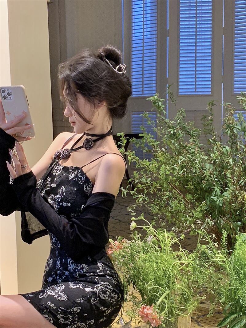 Gothiscyn レトロホットガールスーツ花柄スリングドレス夏ショールブラウストップスカート 2 点セットシック サマー 夏物