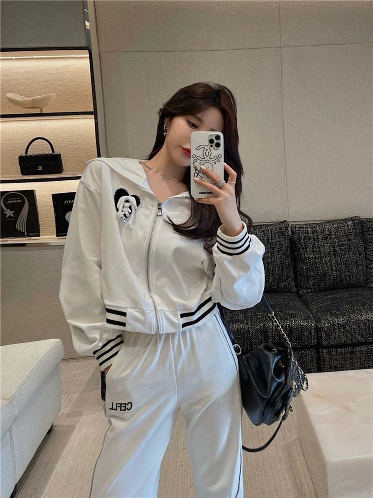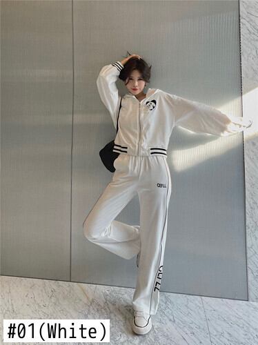 ツーピースセットレディース衣装レタージッパーフード付きカーディガンウエストレジャーワイドレッグパンツ梨花服秋セット オータム 秋物 ワイドパンツ