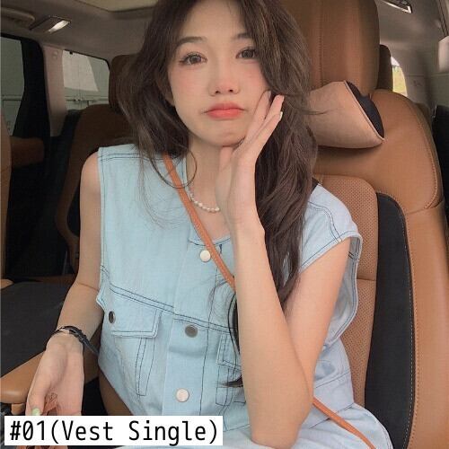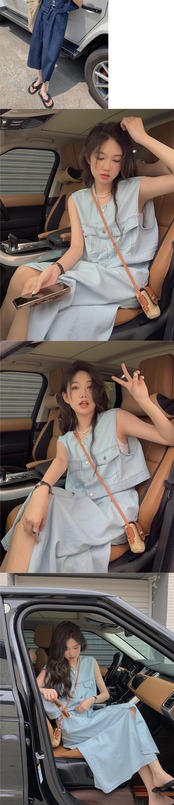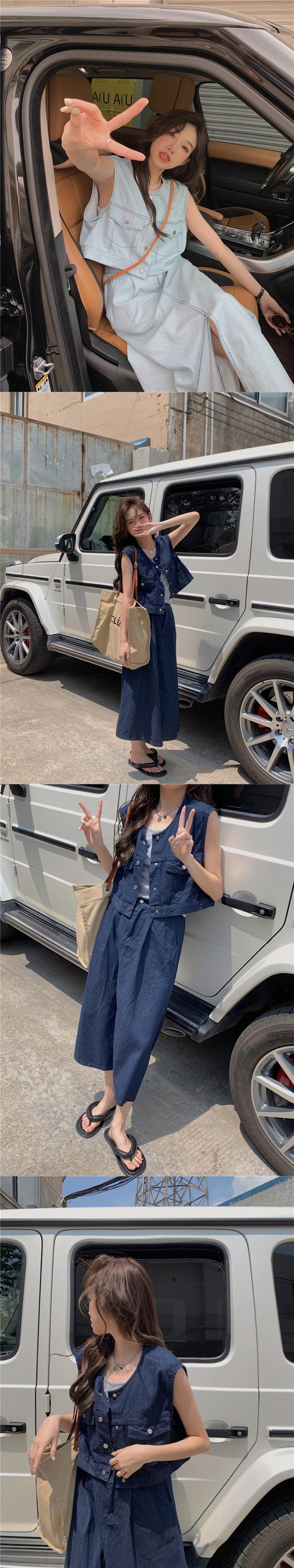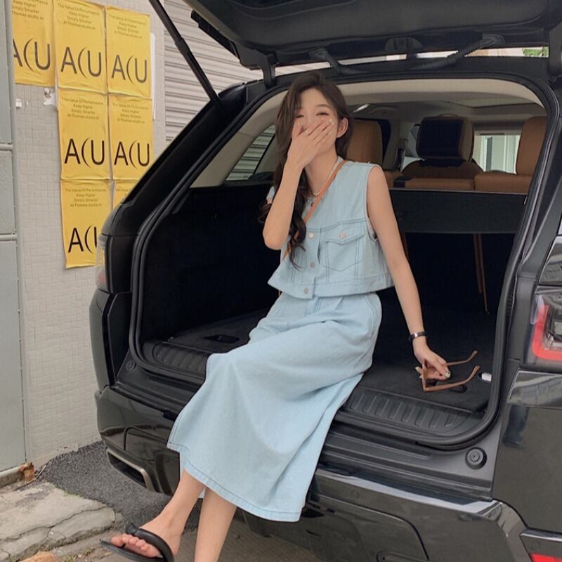 デニムセットロングスカートスーツ香港スタイルスウィートクールホットガール夏デニムベストスカートノースリーブツーピーススーツ 大人ガーリー キュート カジュアル サマー 夏物