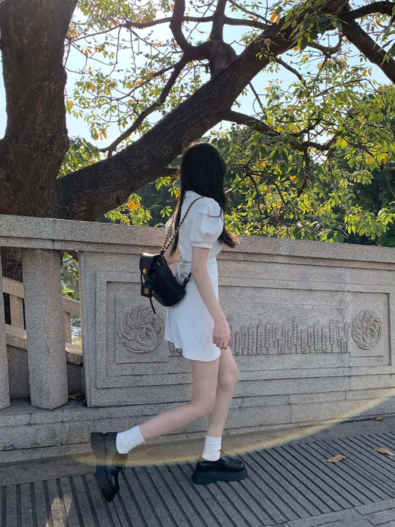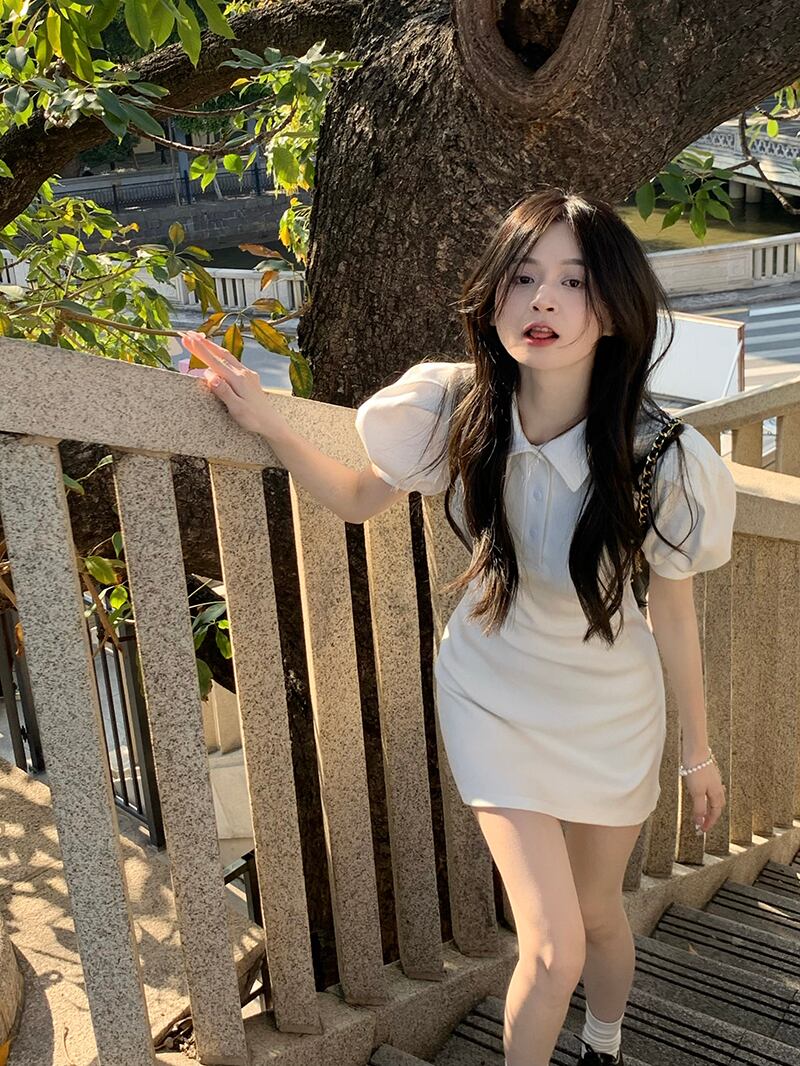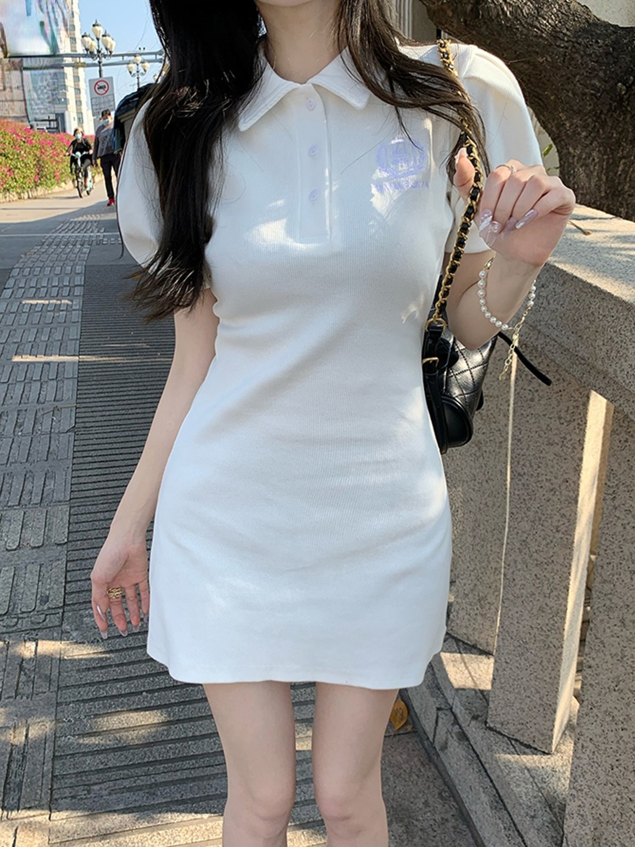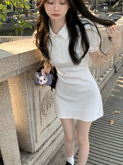 Gothiscyn ピンクドレスパフスリーブ Tシャツスカートウエスト甘いホットガールネックスリムサマースカート 大人ガーリー スウィート キュート カジュアル 夏物