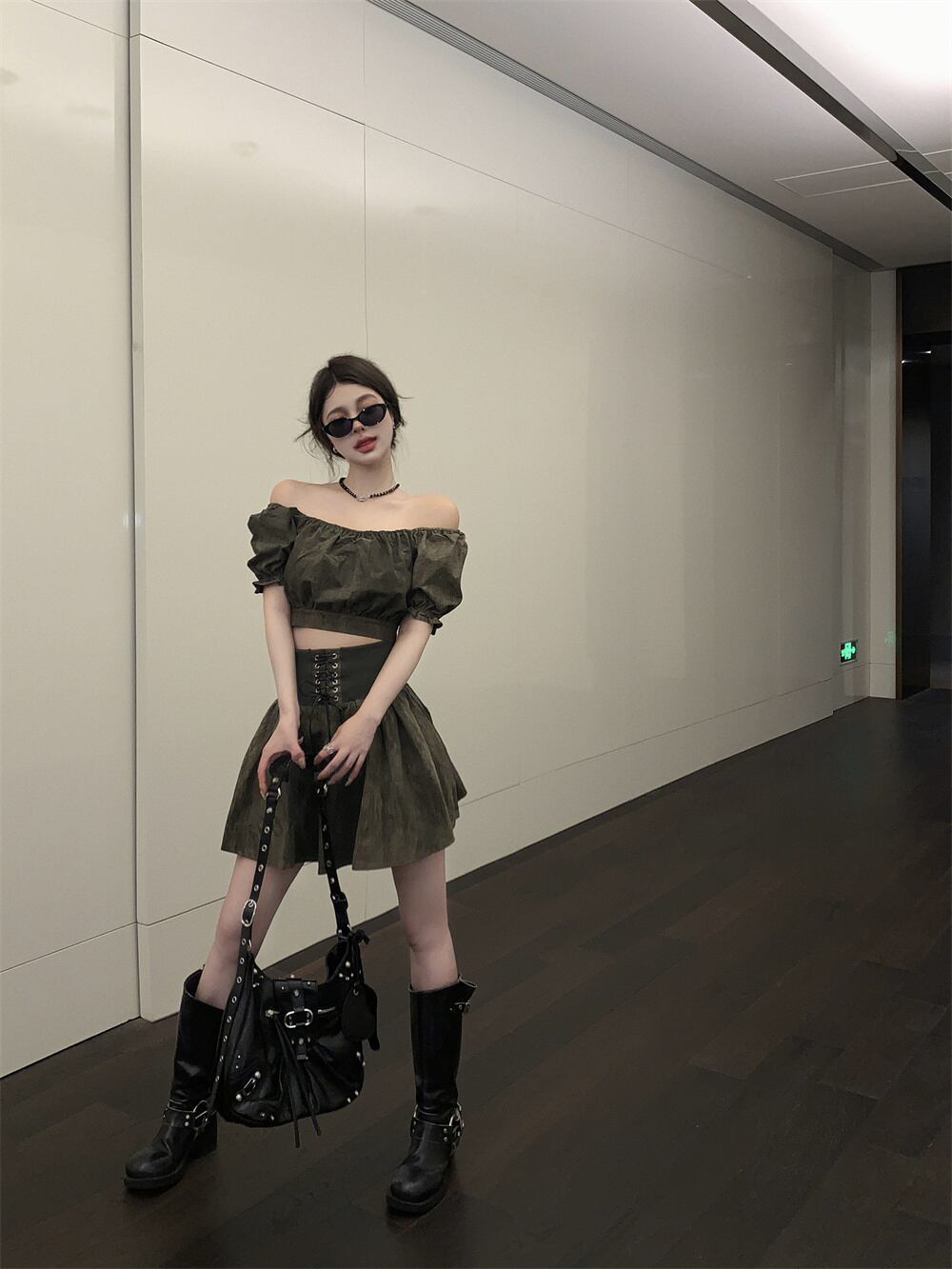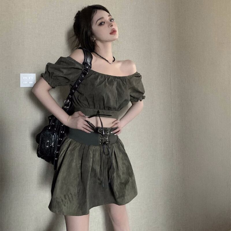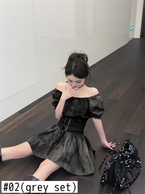 甘いホットガール夏スーツ半袖シャツトップひもウエストミニスカート 2 点セット服 大人ガーリー スウィート キュート カジュアル サマー 夏物