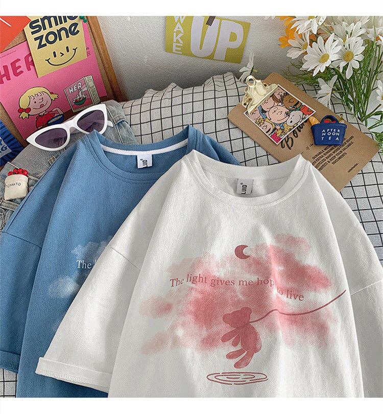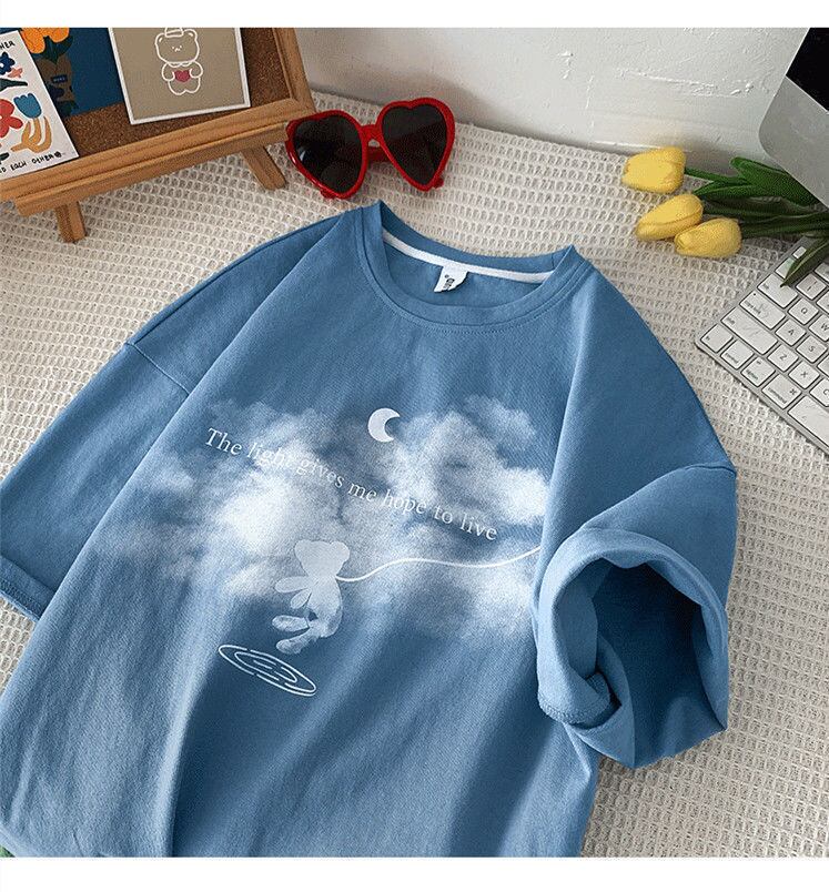 スタイル半袖 Tシャツ夏 O ネック ese プリント学生ルーズトップ服 サマー 夏物 Oネック