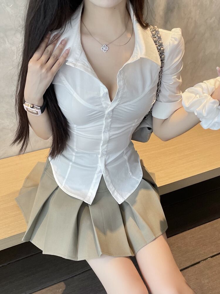 Gothiscyn ホットガールスーツシャツ甘いプリーツスカート 2 点セット夏セクシー純粋欲望スーツ 大人ガーリー スウィート キュート カジュアル サマー 夏物 ピュア