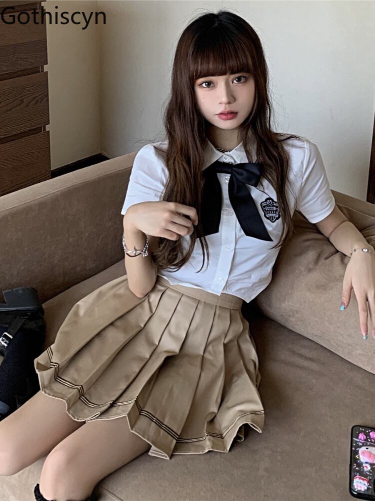 Gothiscyn プレッピー JK スーツ夏ホットガールピュアデザイア半袖シャツ + プリーツスカート学生学校ツーピースセット サマー 夏物