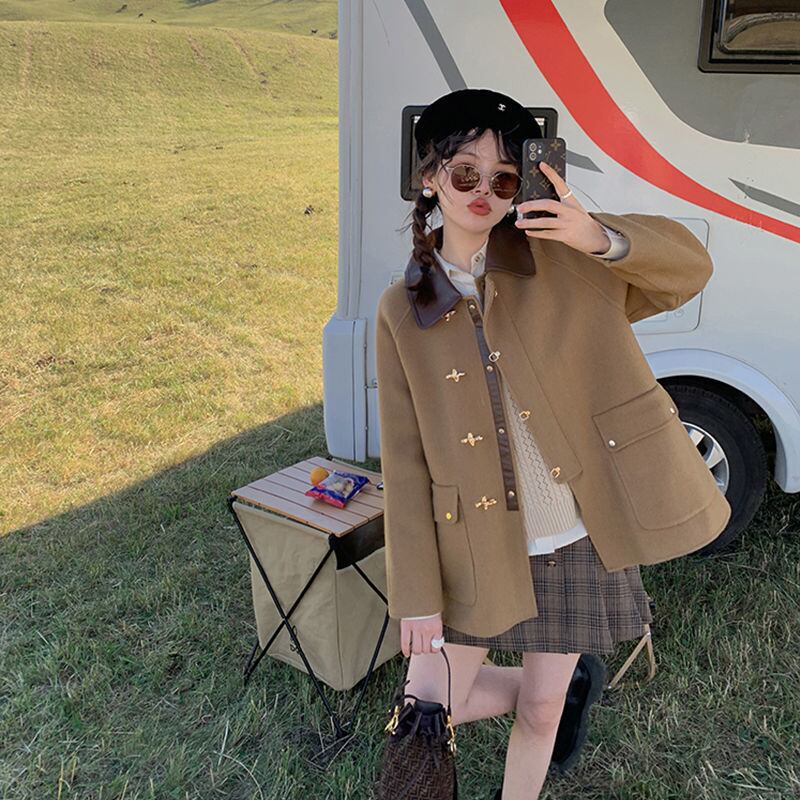 Gothiscyn ウールジャケットポケットピーターパンカラー無地コートプレッピールースジャケット服トップ ソリッドカラー