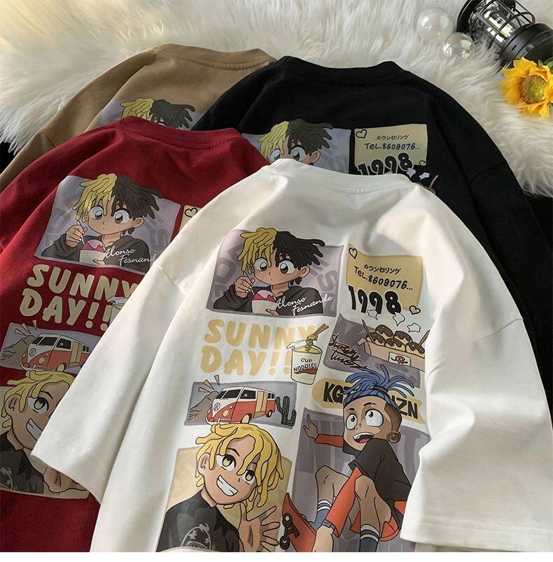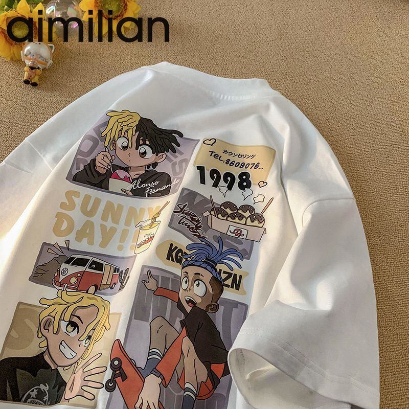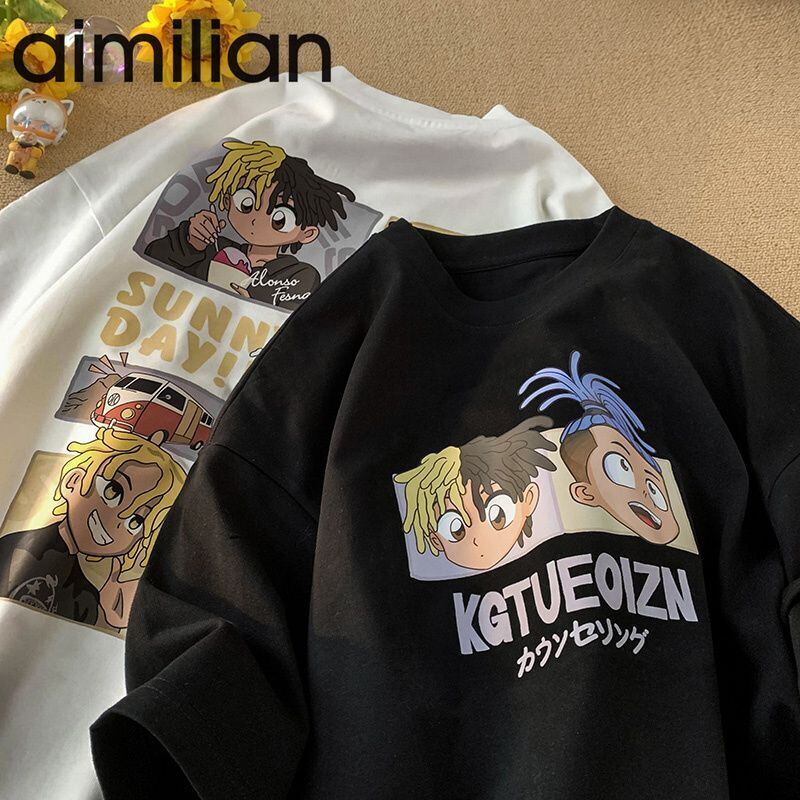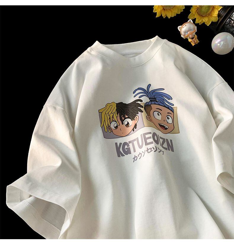 コットン おもしろ プリント 半袖 Tシャツ 男女兼用 Oネック ゆったり 万能 ヒップホップ 上着