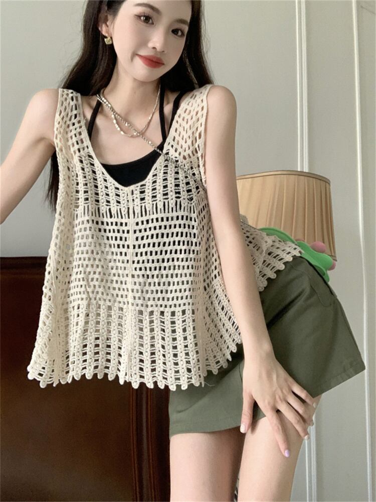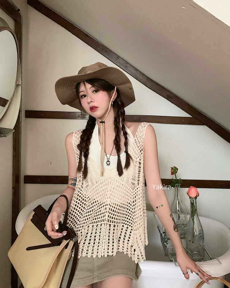 Gothiscyn 中空アウトブラウスベストサスペンダールーズアウター夏アウターウェアトップ E ガール服 サマー 夏物