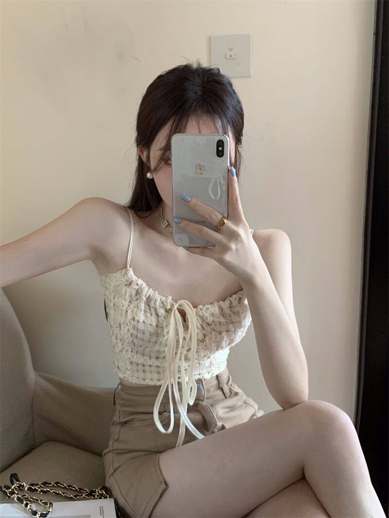 Gothiscyn タンクトップ セクシーストラップ付きサスペンダーベストトップス甘いノースリーブホットガールズスタイル服 大人ガーリー スウィート キュート カジュアル