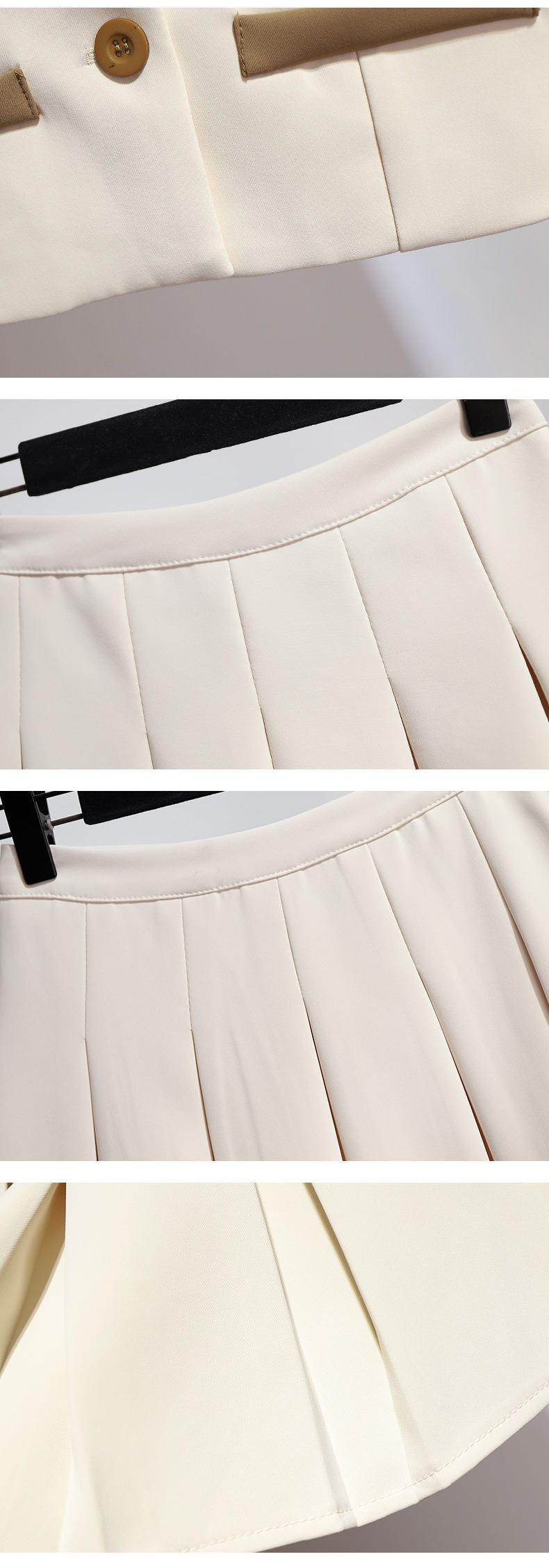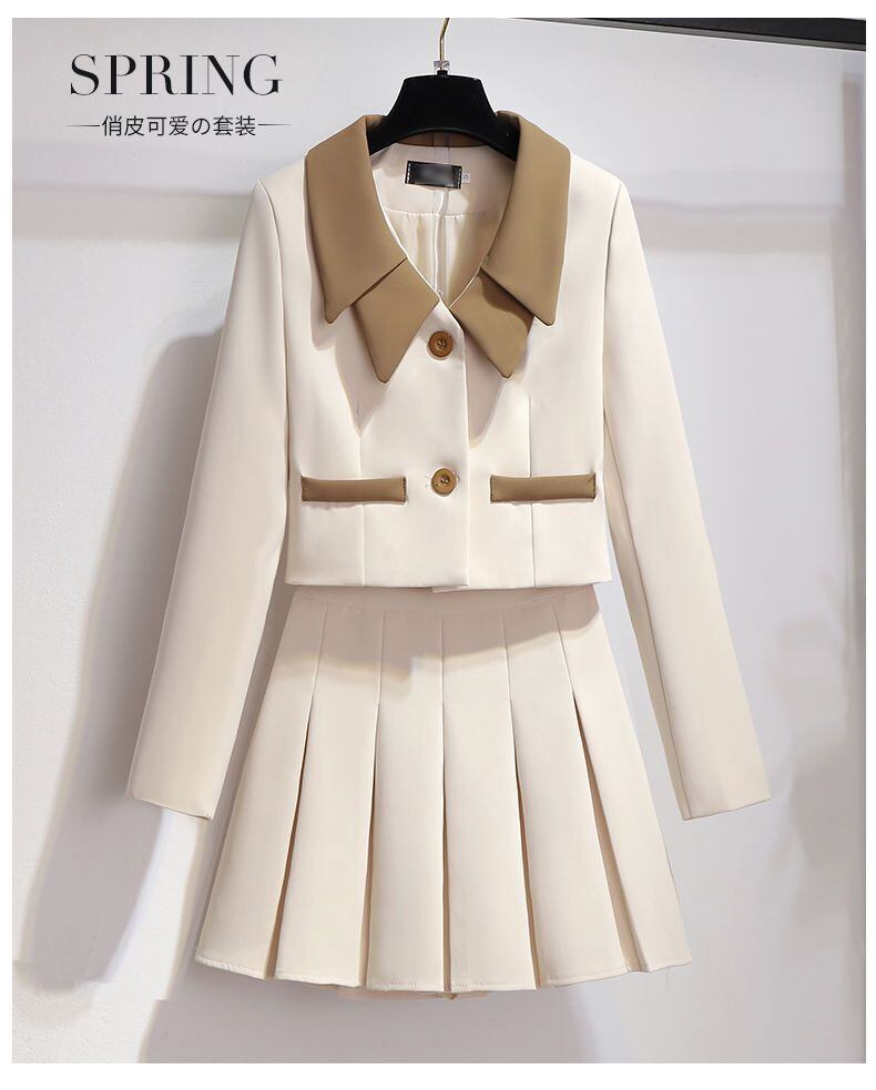 OLスーツ レディース 春先 長袖 ターンダウンカラー コート ウエストプリーツスカート 2点セット 洋服 ロング スプリング 春物 会社 学校 通勤や通学にも