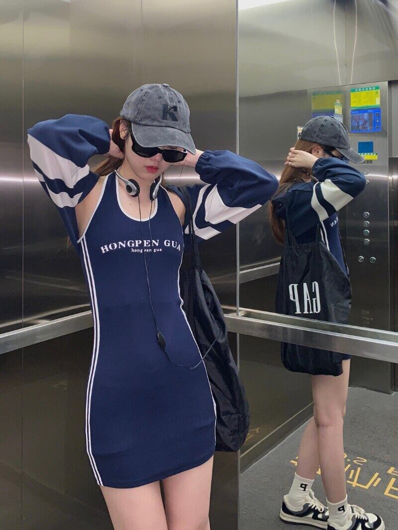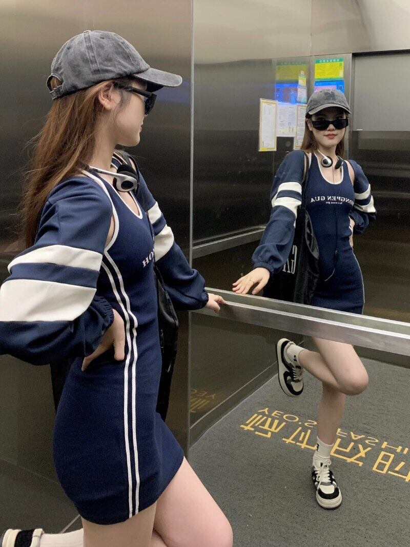 初秋アメリカンホットガールスーツスタイル長袖カーディガンホルタードレスツーピースセット Y2k 服 ロング オータム 秋物