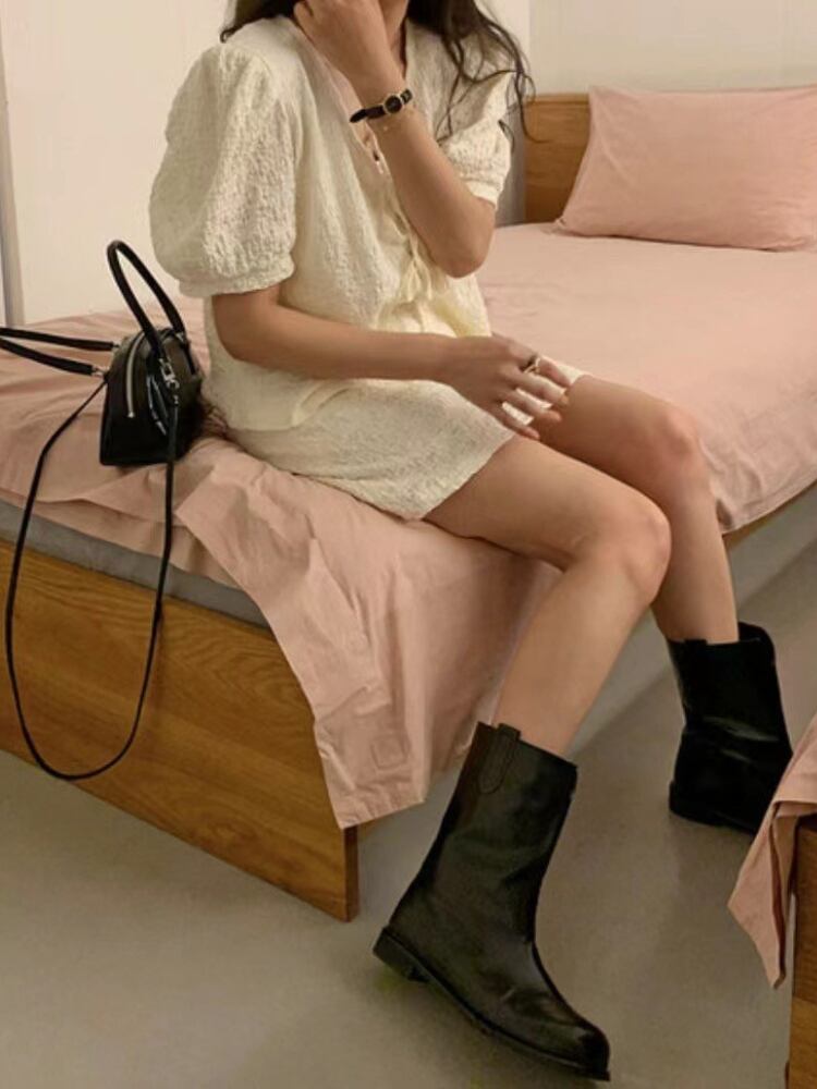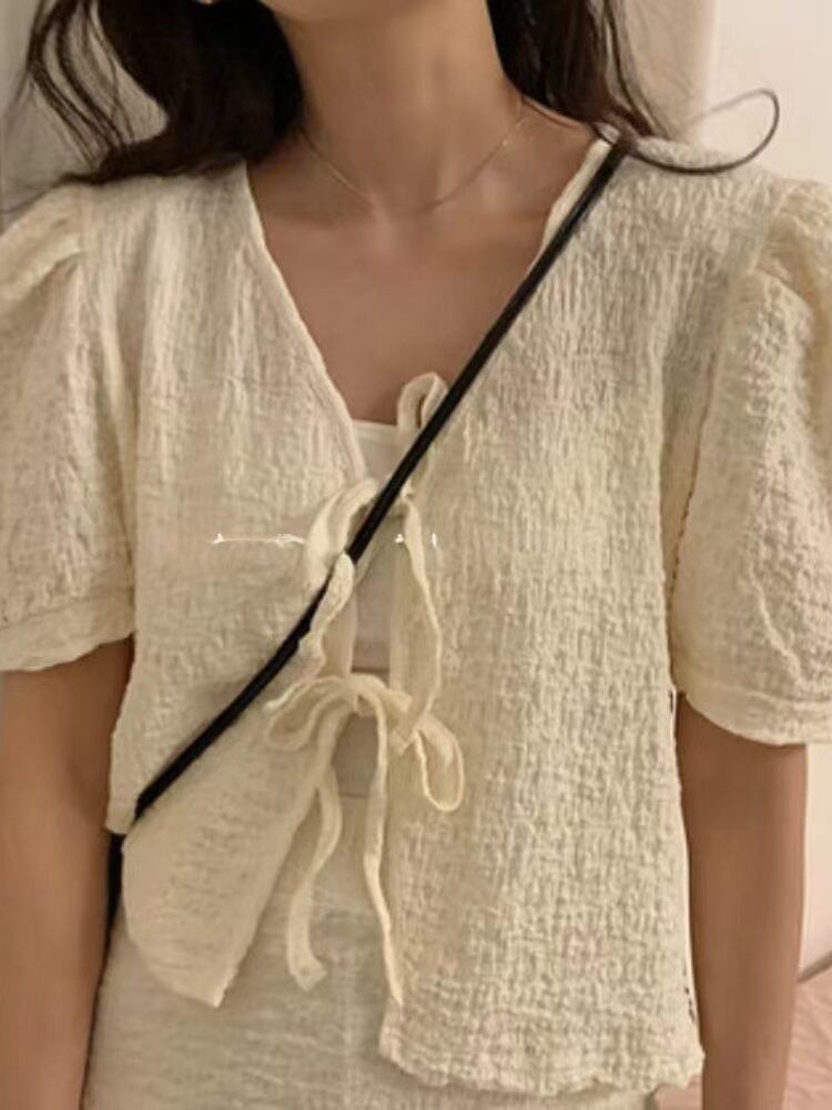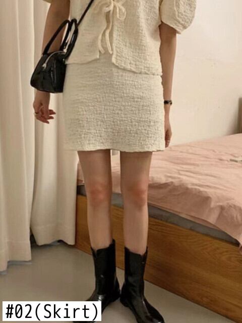 Gothiscyn オフィスレディ スカート 2点セット ホワイト カーディガン パフスリーブ スカート スーツ 夏 無地 サマー 夏物 ソリッドカラー 会社 学校 通勤や通学にも